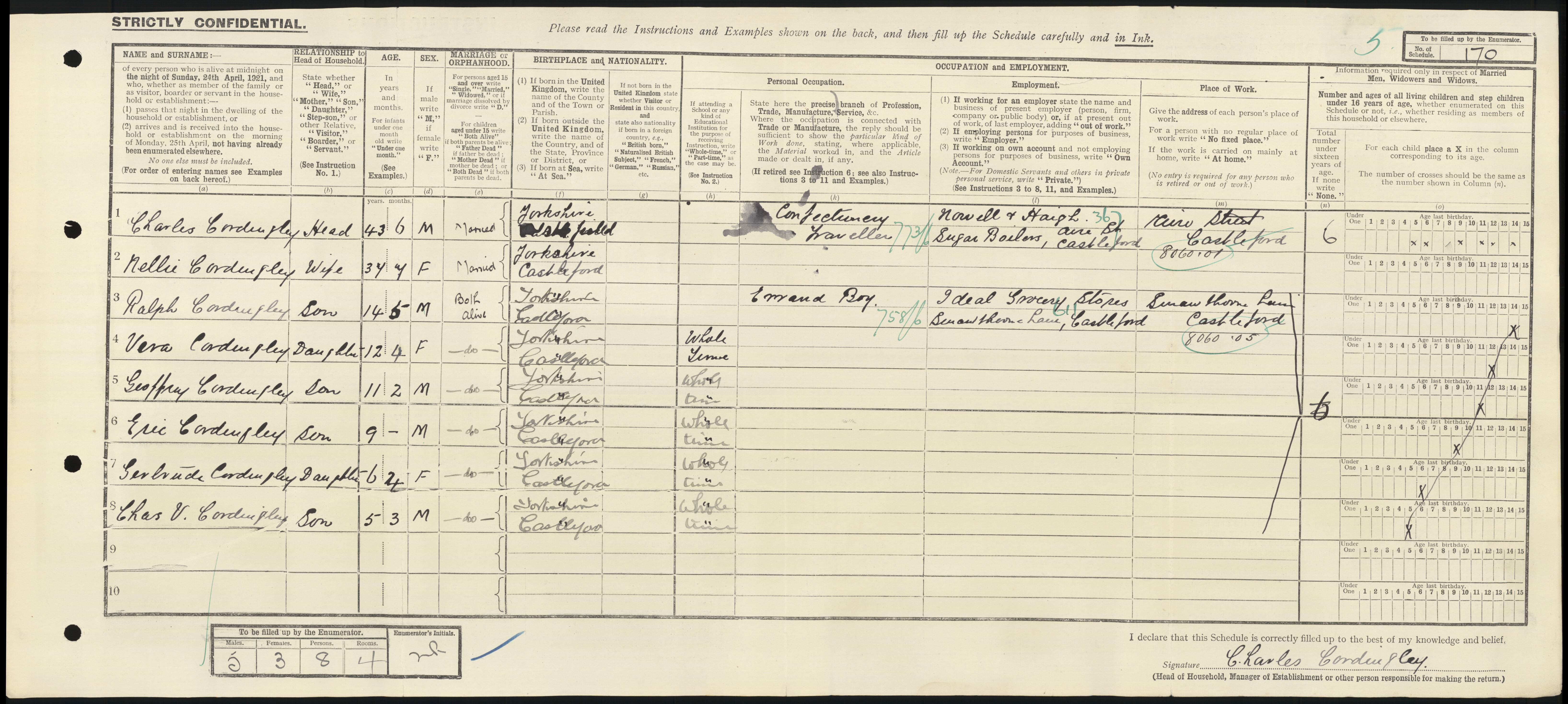 • Occupation: Baker, 1939, Castleford, Yorkshire.