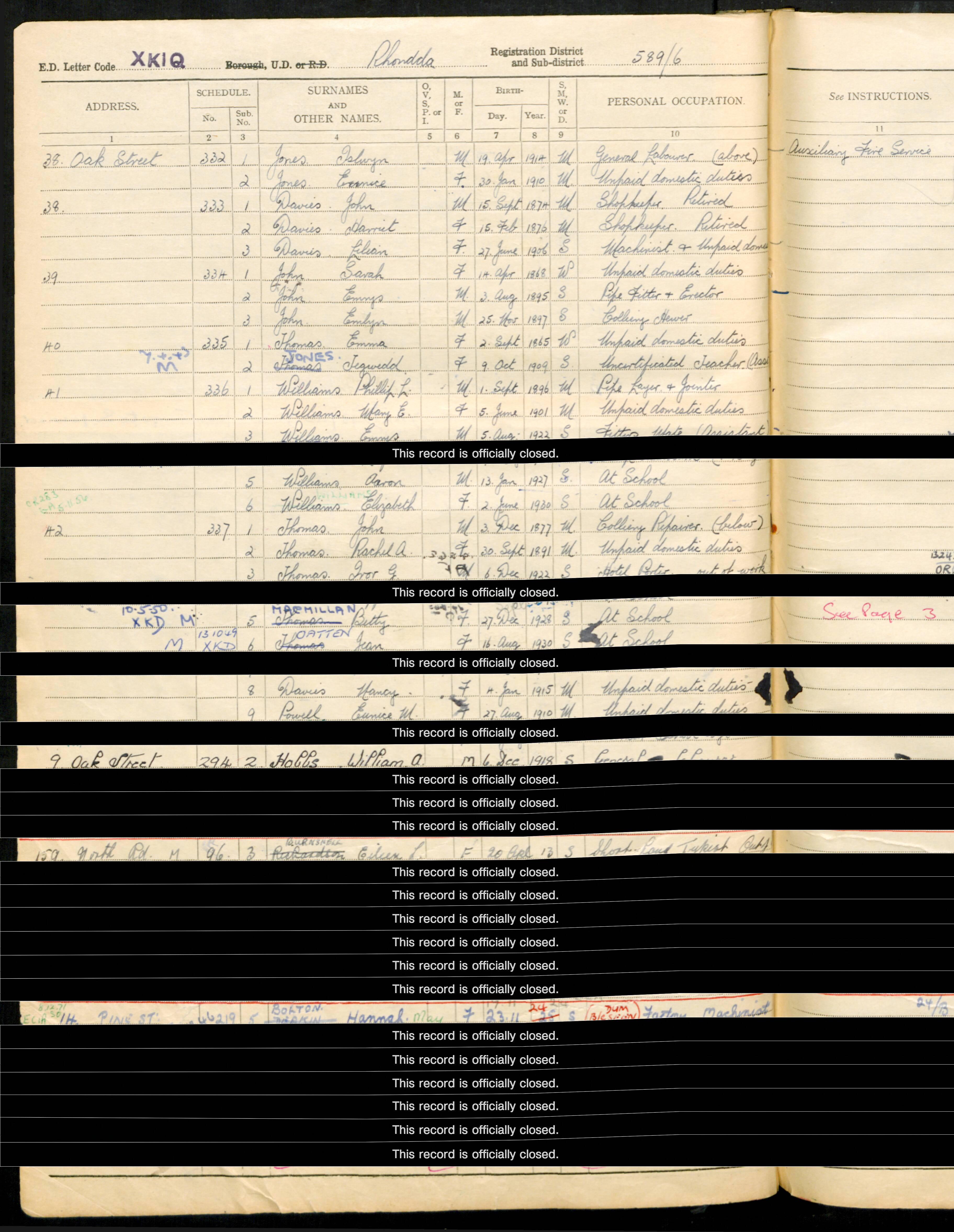• Occupation: Shopkeeper Retired, 1939, Rhondda.