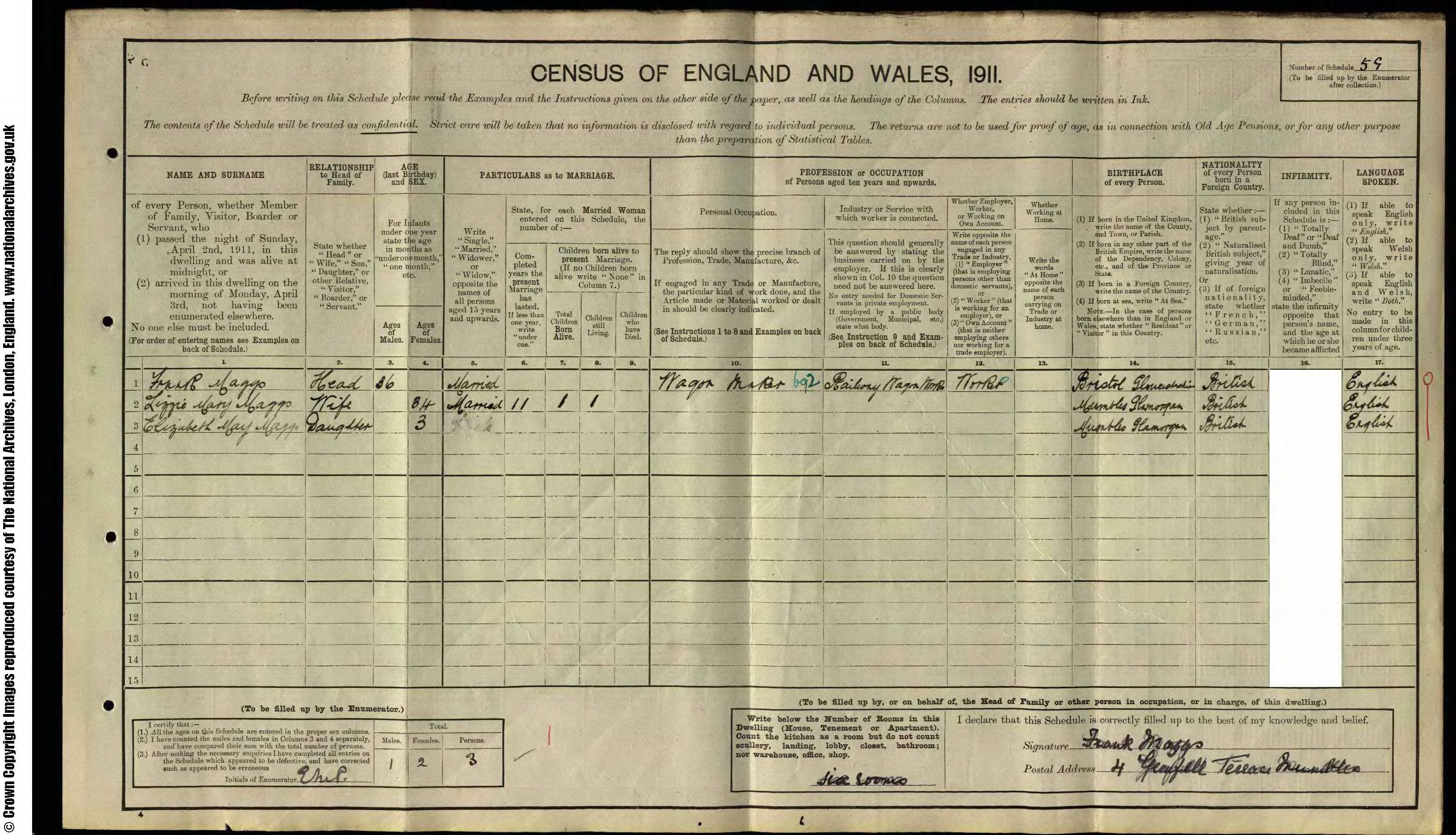 • Lived at: 4 Grenfell Terrace, 1911, Mumbles, Glamorgan, Wales.