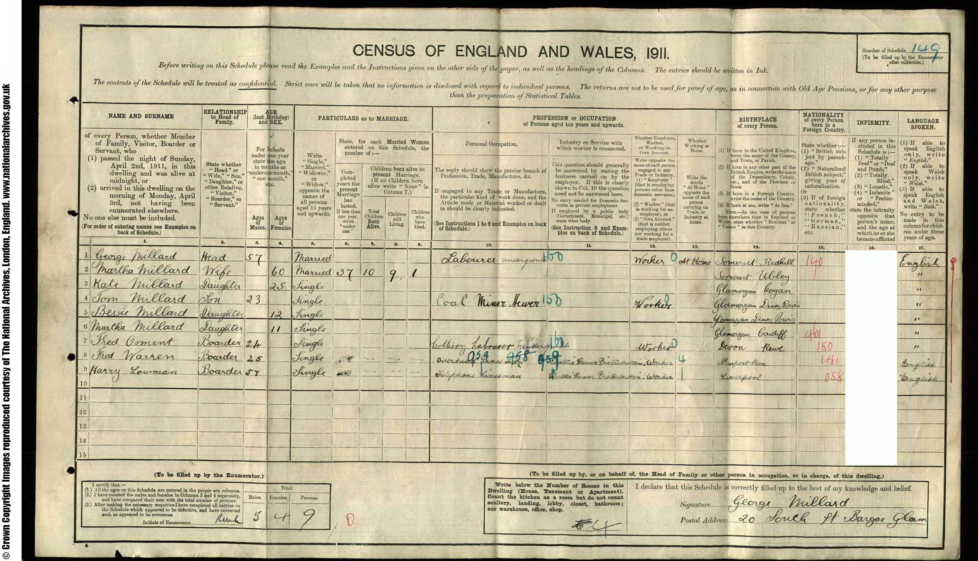 • Lived at: 20 South Street, 1911, Bargoe, Glamorgan.