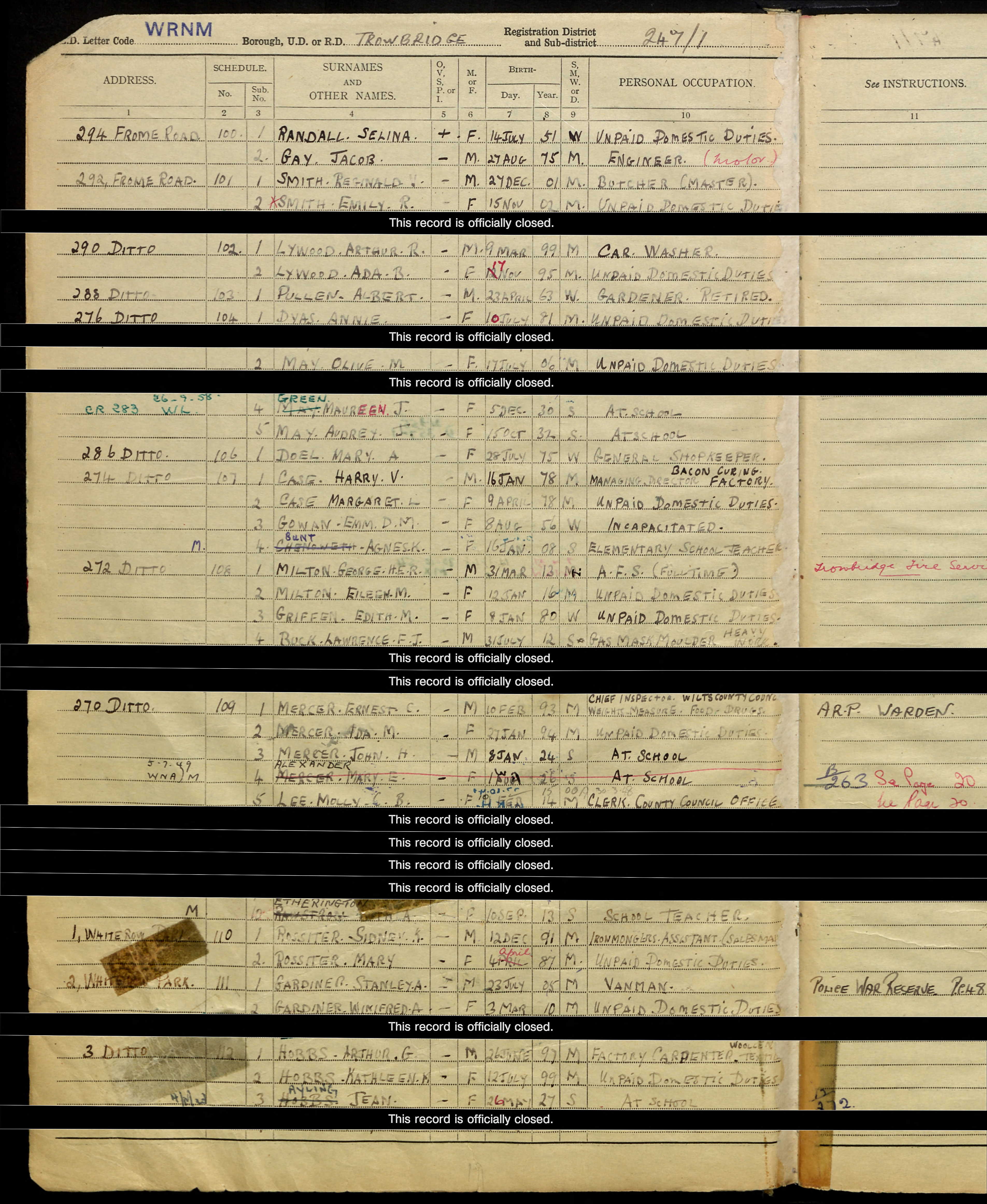 • Lived at: Trowbridge, 1939.
