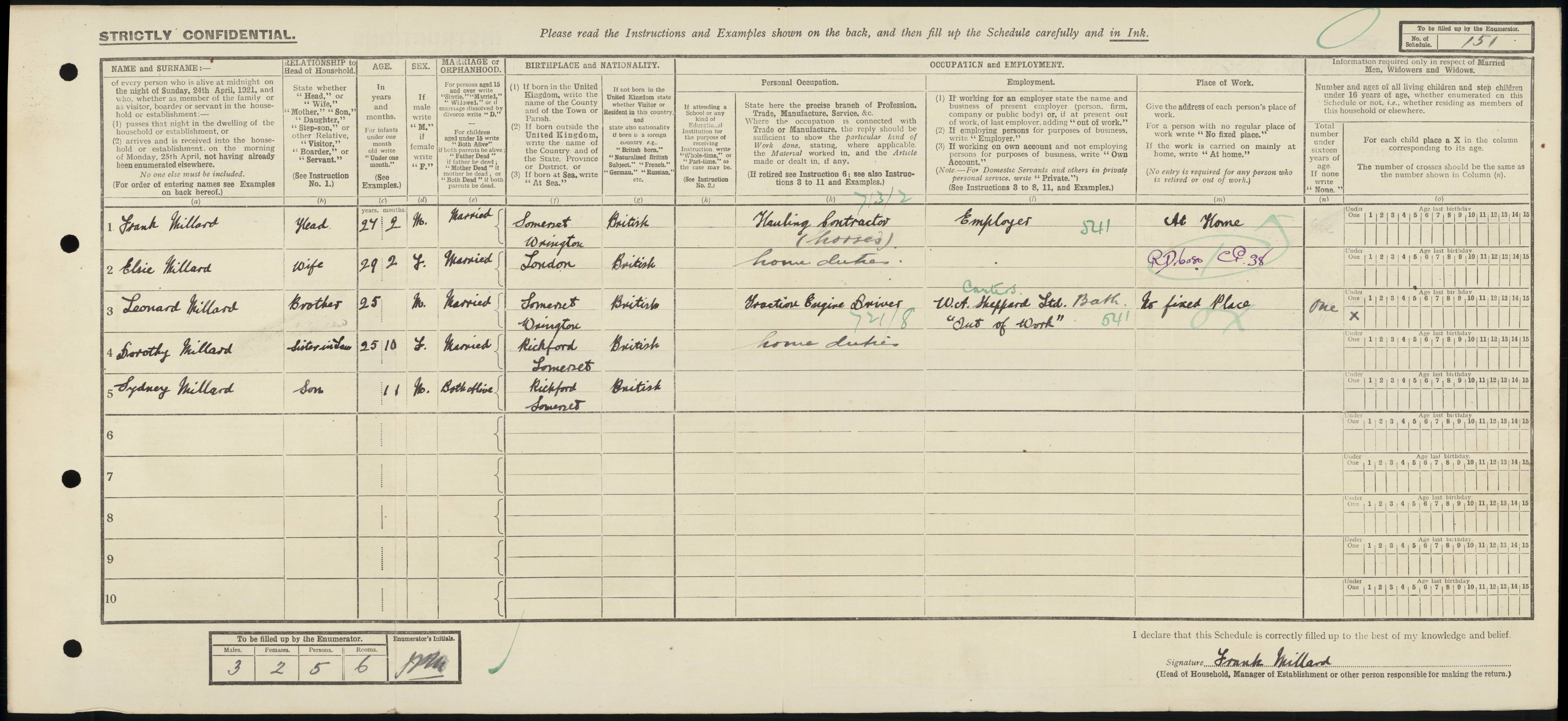 • Occupation: Hauling Contractor (Horses), 1921, Wrington, Somerset, England.