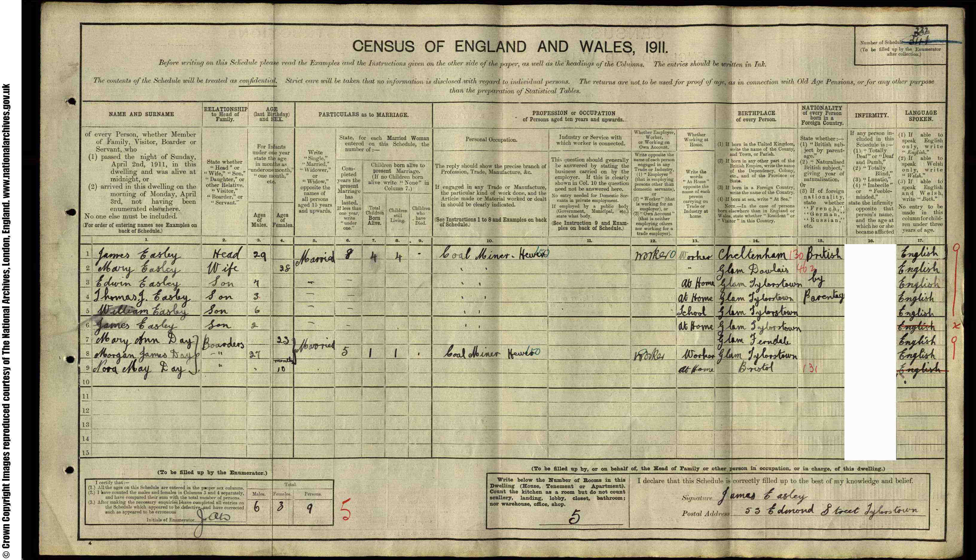 • Lived at: 54 Edmond Street, 1911, Tylorstown, Ystradyfodwg, Glamorgan, Wales. |
