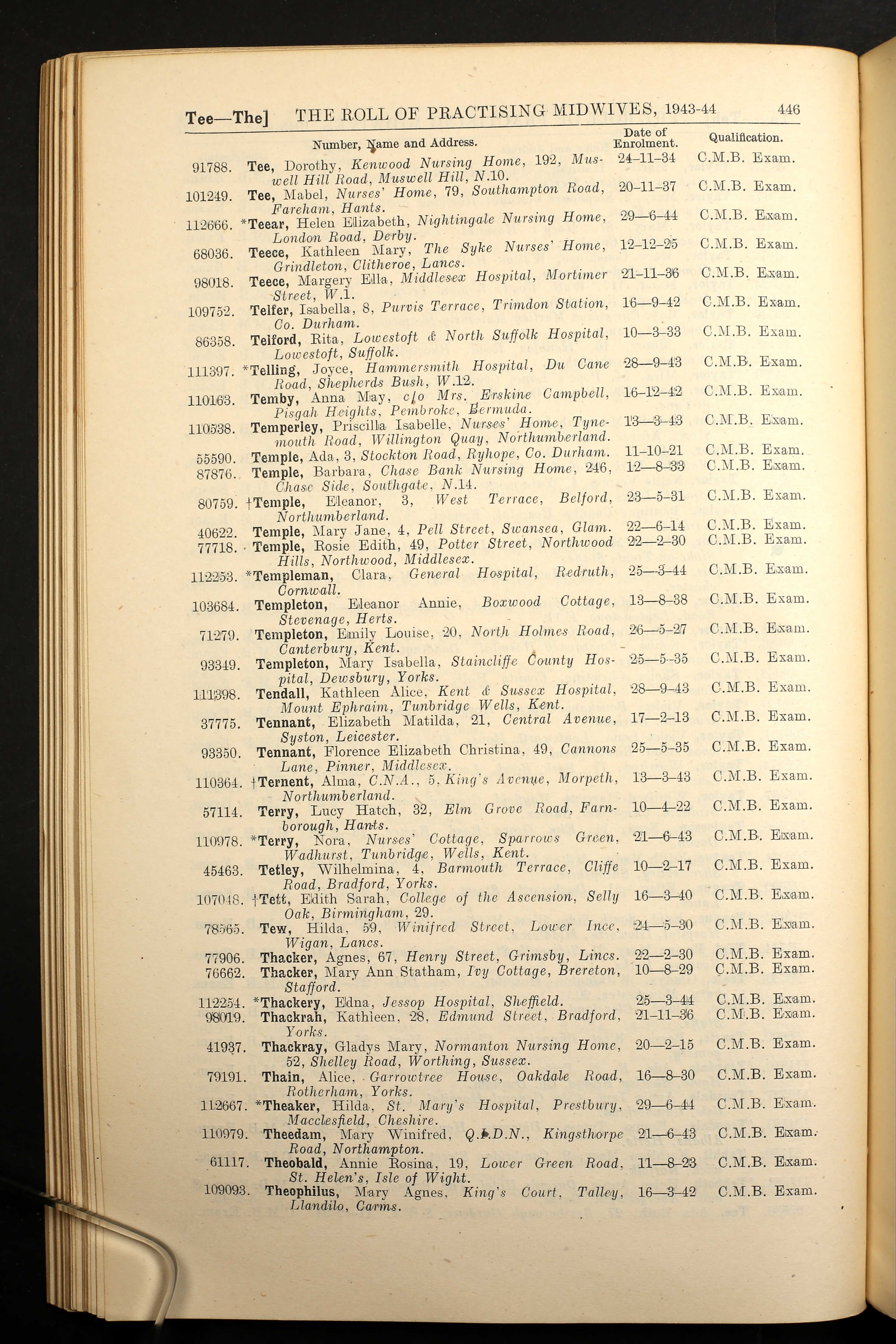 • Occupation: Midwife, 1933, London.