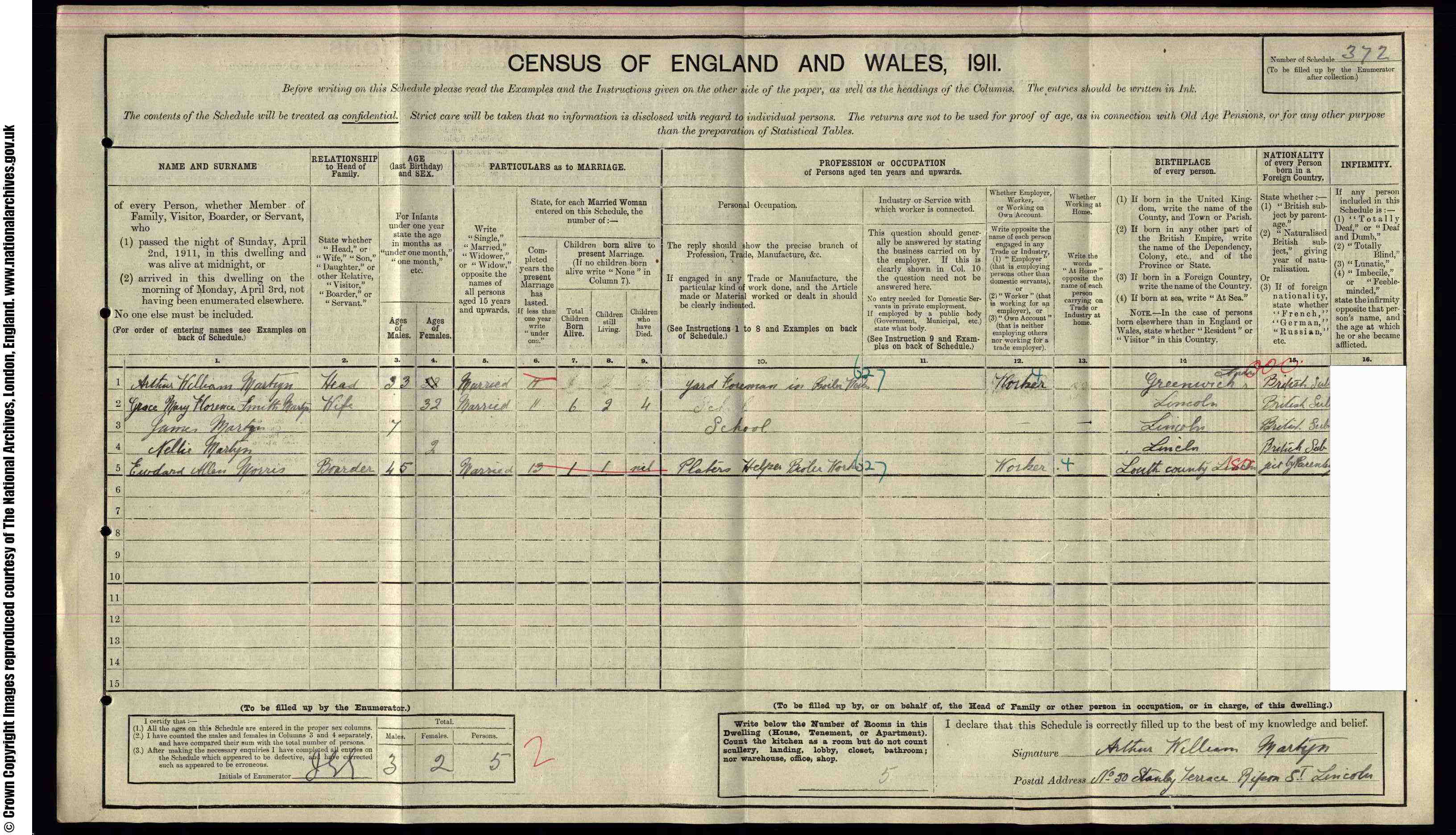 • Lived at: 50 Stanley Terrace, Ripon Street, 1911, Lincoln, Lincolnshire, England.