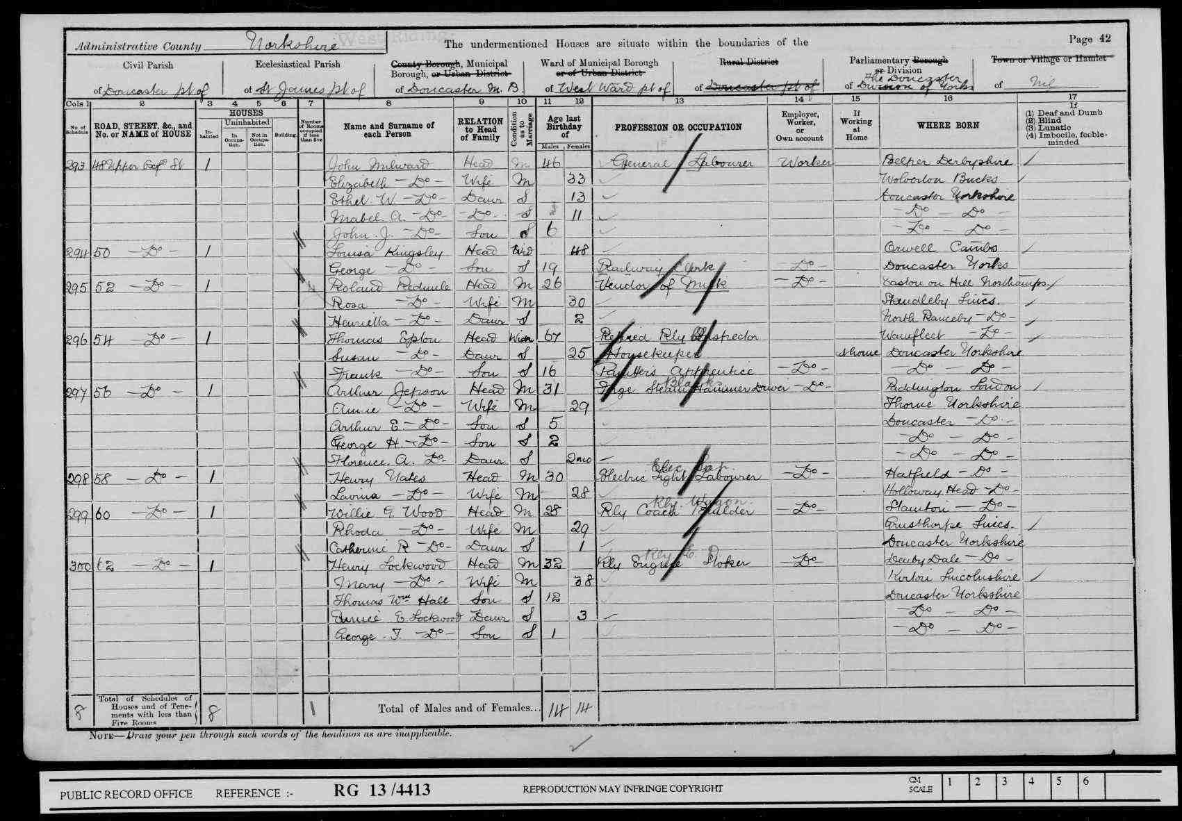 • Lived at: 62 Upper Oxford Street, 1901, Doncaster, Yorkshire, England.