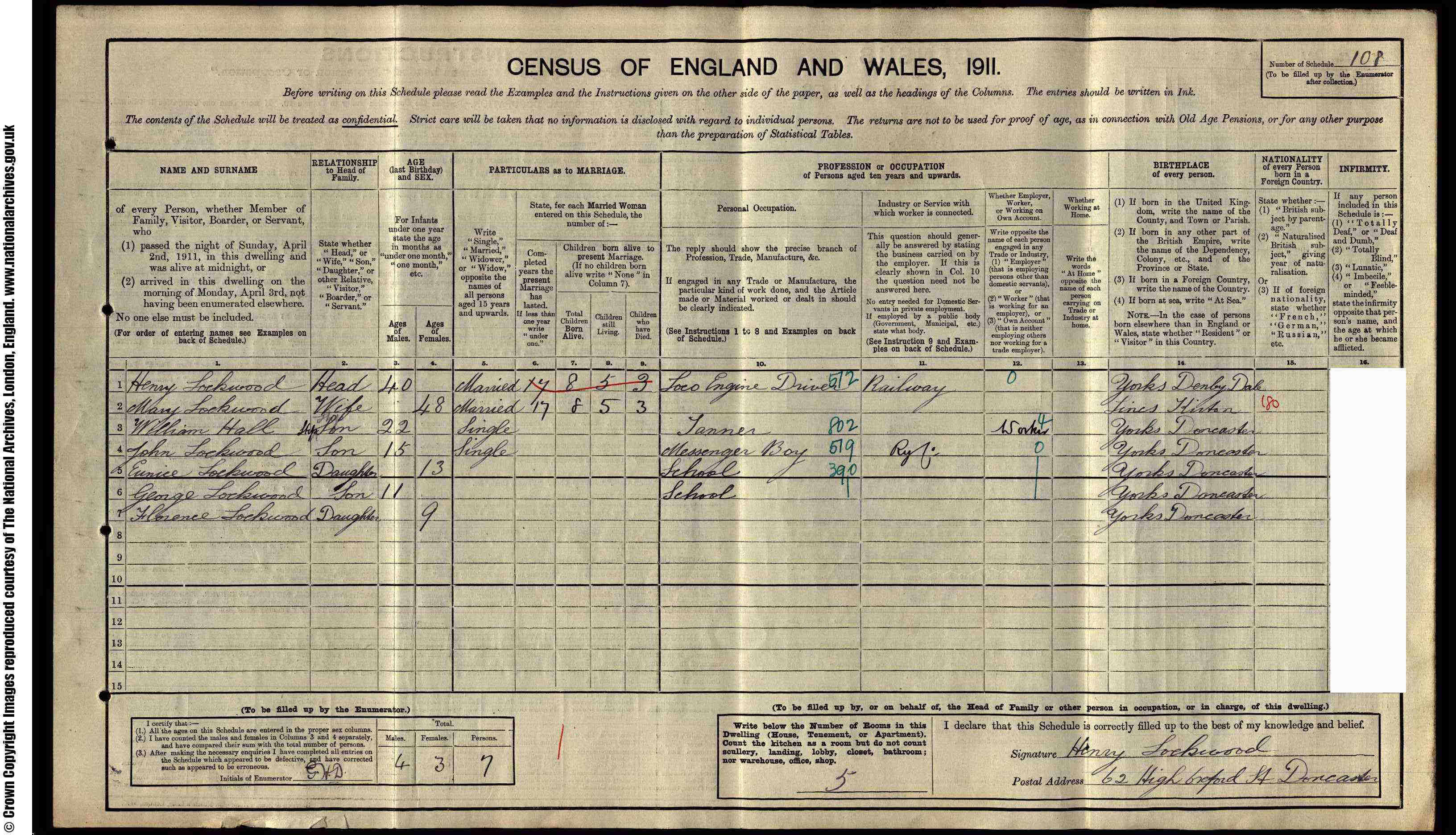 • Lived at: 62 High Oxford Street, 1911, Doncaster, Yorkshire, England.