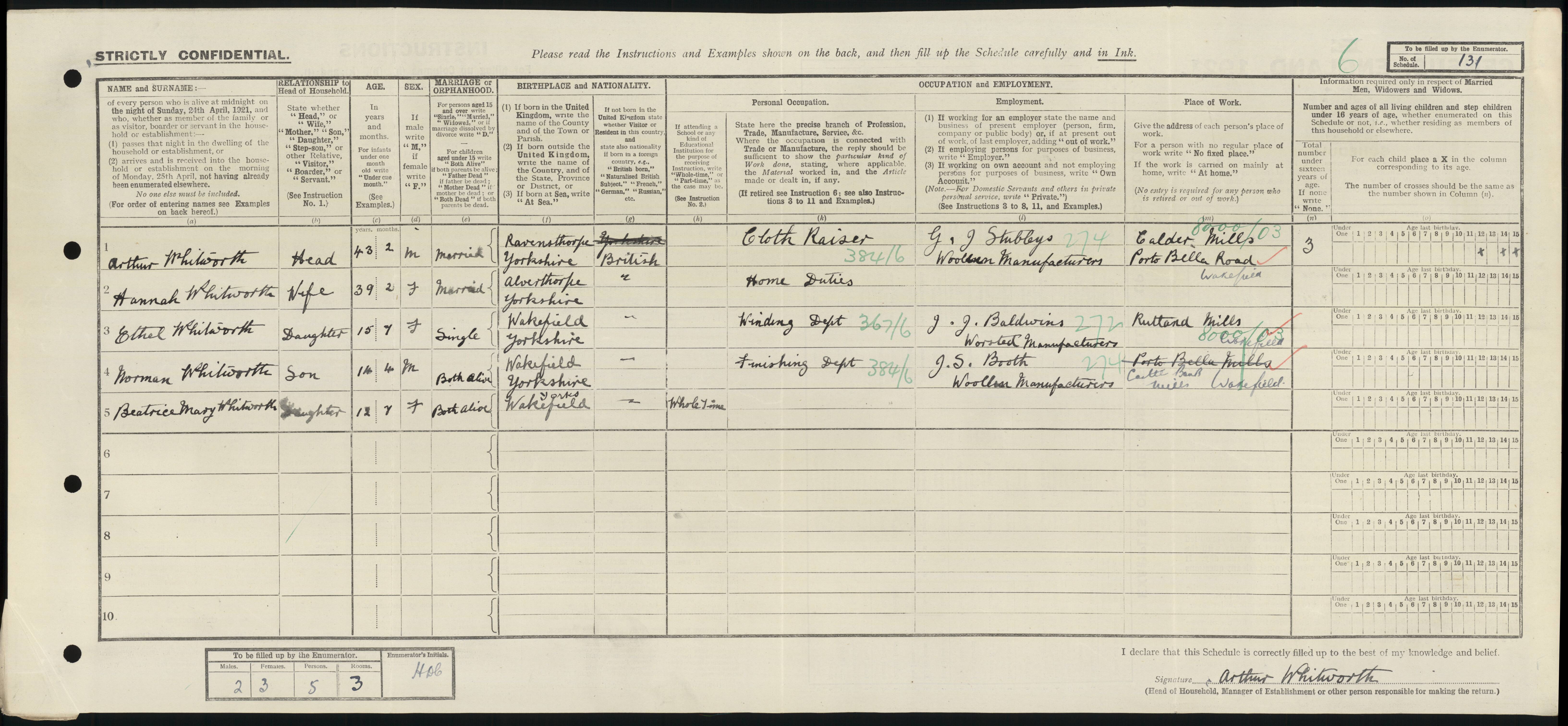 • Lived at: 65 Haddingly Hill, 1911, Sandal, Wakefield, Yorkshire.