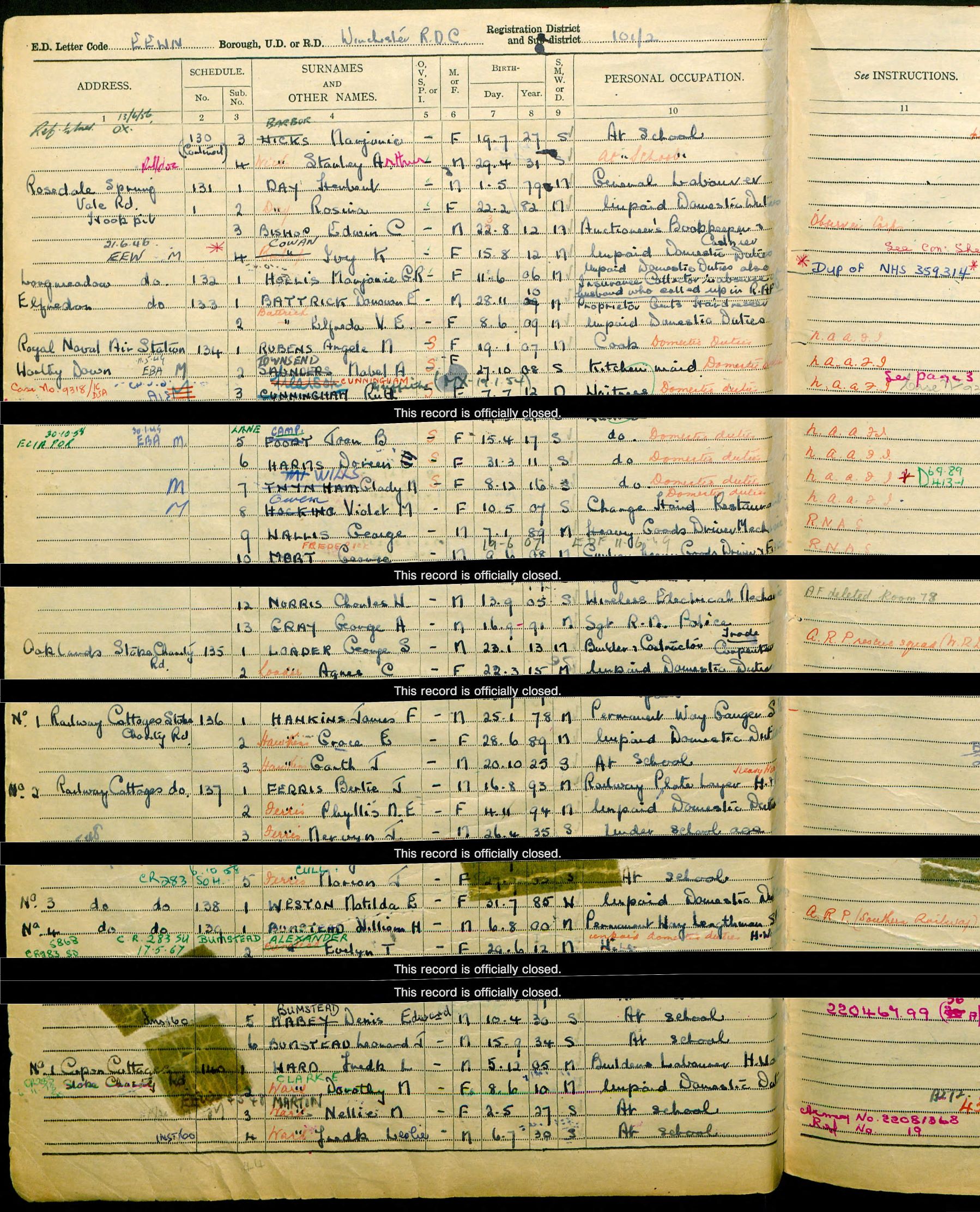 • Occupation: Insurance Collector (whilst husband was in RAF), 1939, Winchester, Hampshire.