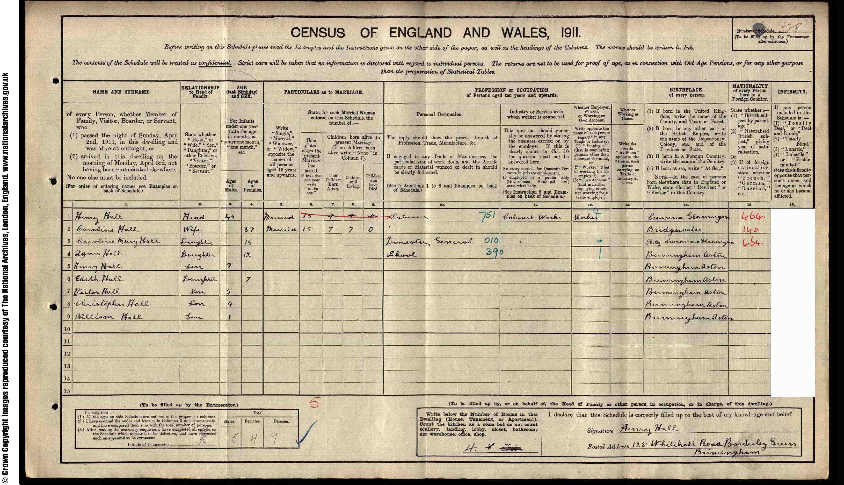 • Lived at: 125 Whitehall Road, 1911, Birmingham, Warwickshire, England. |