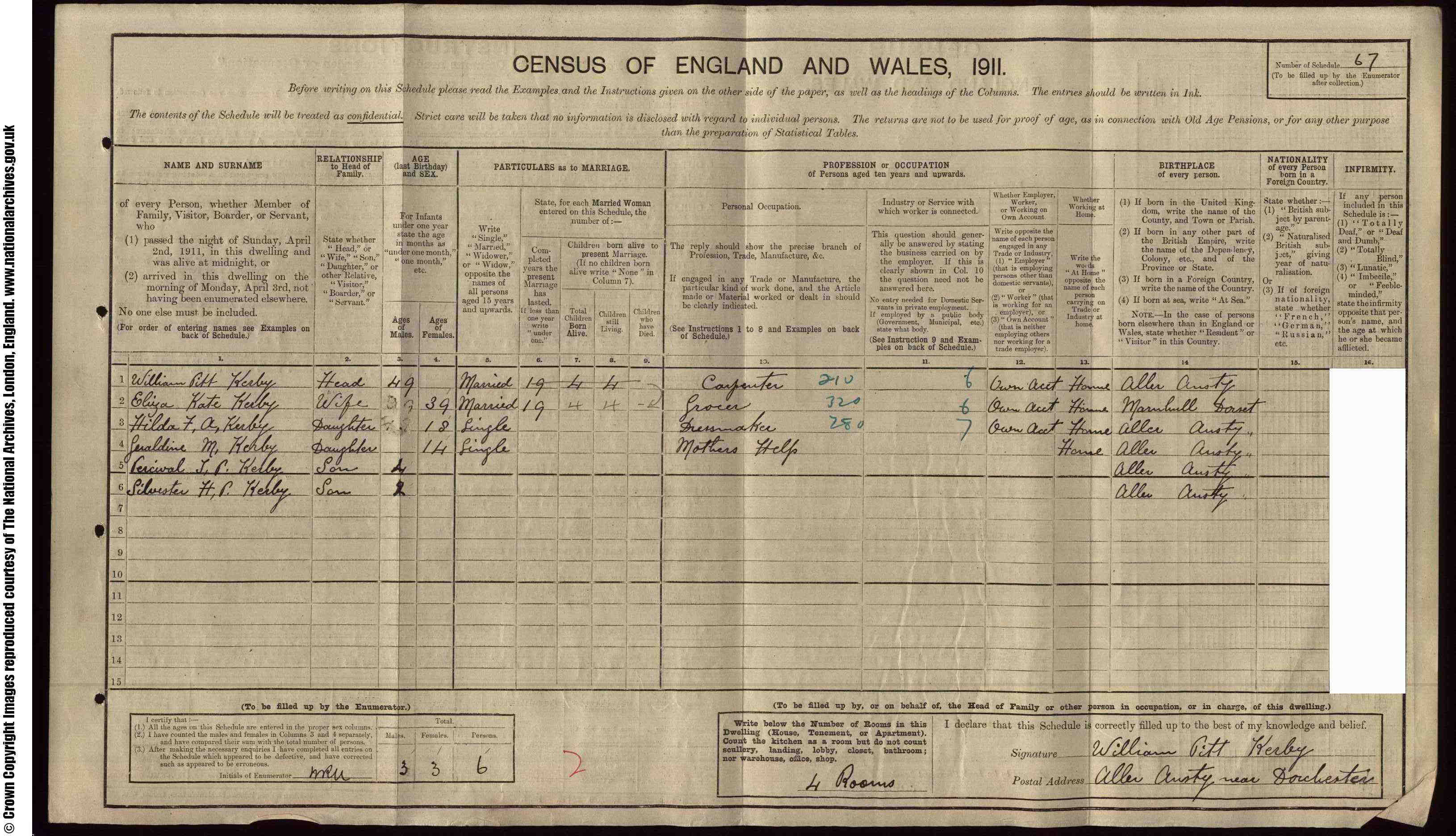 • Lived at: Aller Austy, 1921, Hilton, Dorset, England.
