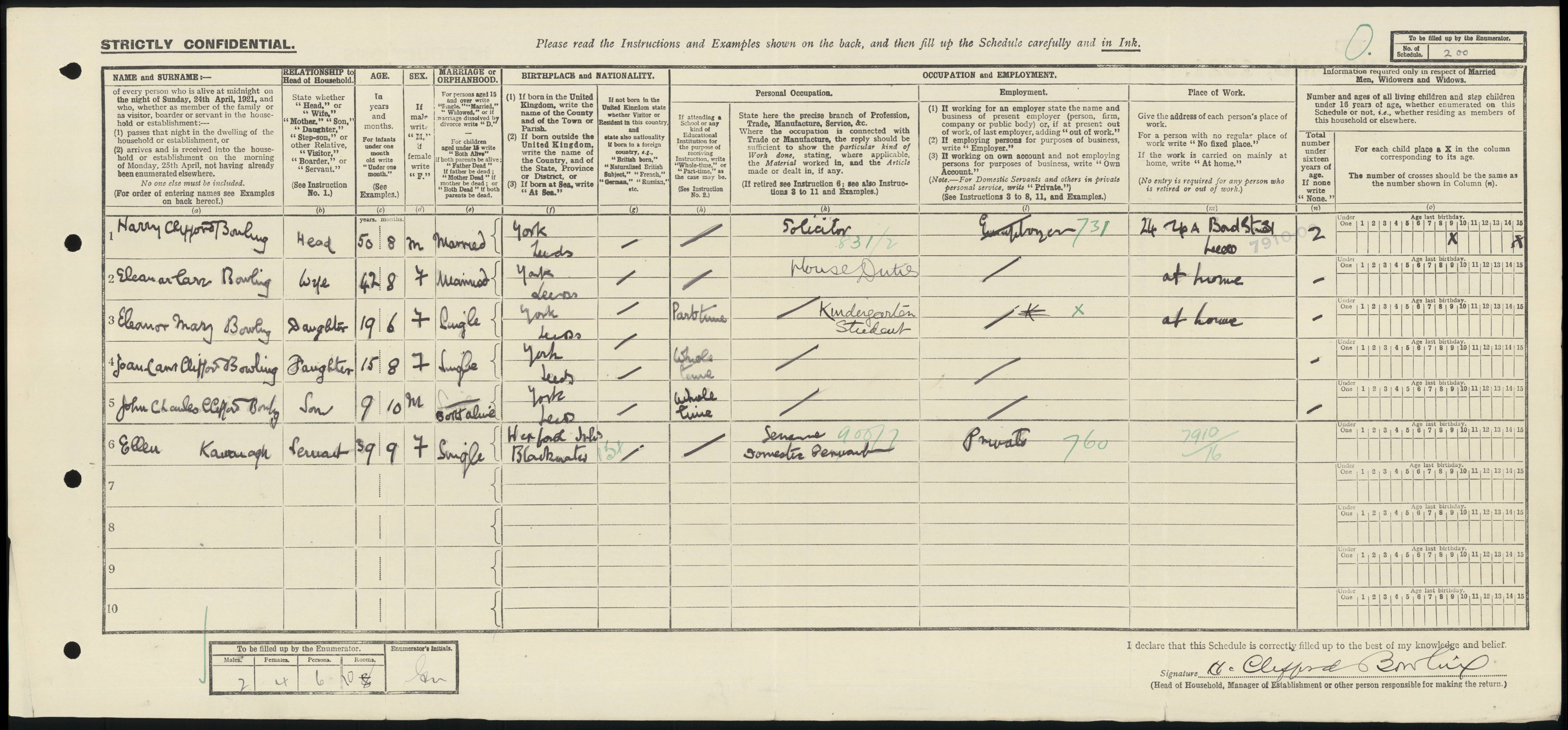 • Occupation: Solicitor, 1921, Leeds, Yorkshire, England.