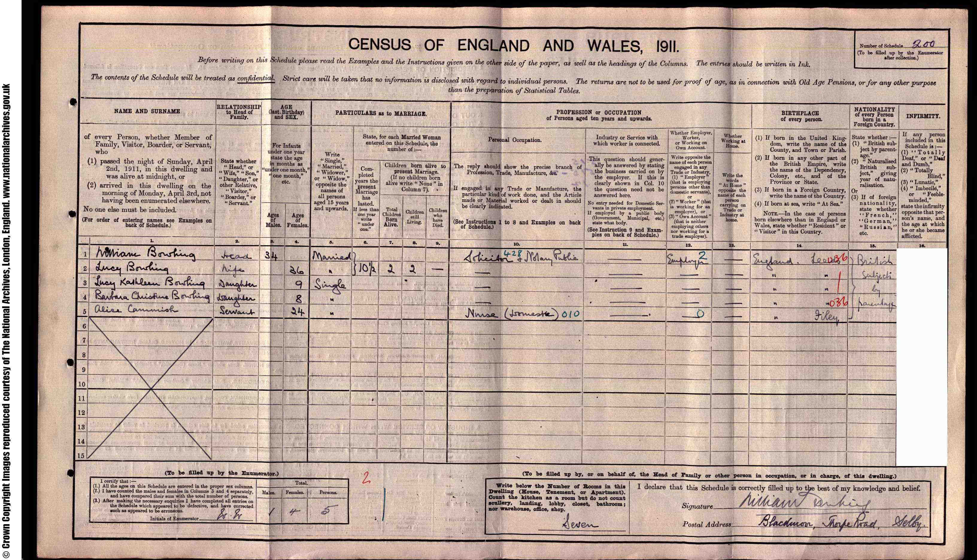 • Occupation: Solicitor and Notary Public, 1911, Selby.