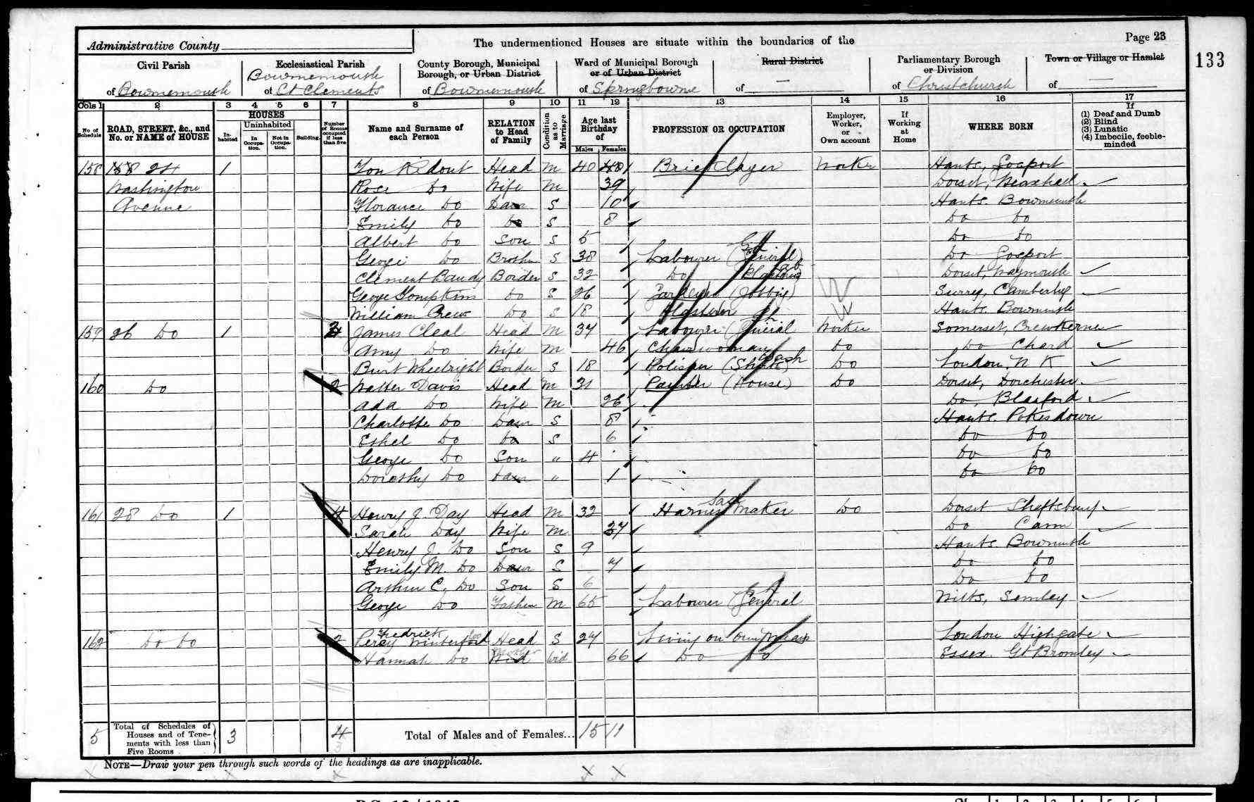 • Lived at: 28 Washington Avenue, 1901, Christchurch, Dorset. |
