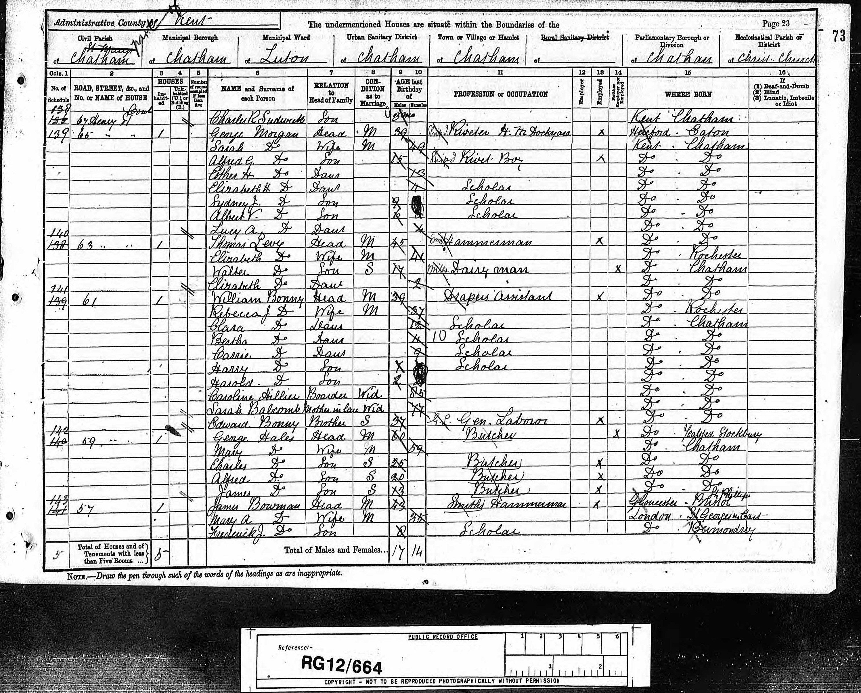 • Occupation: Butcher, 1891, Chatham, Kent, England.