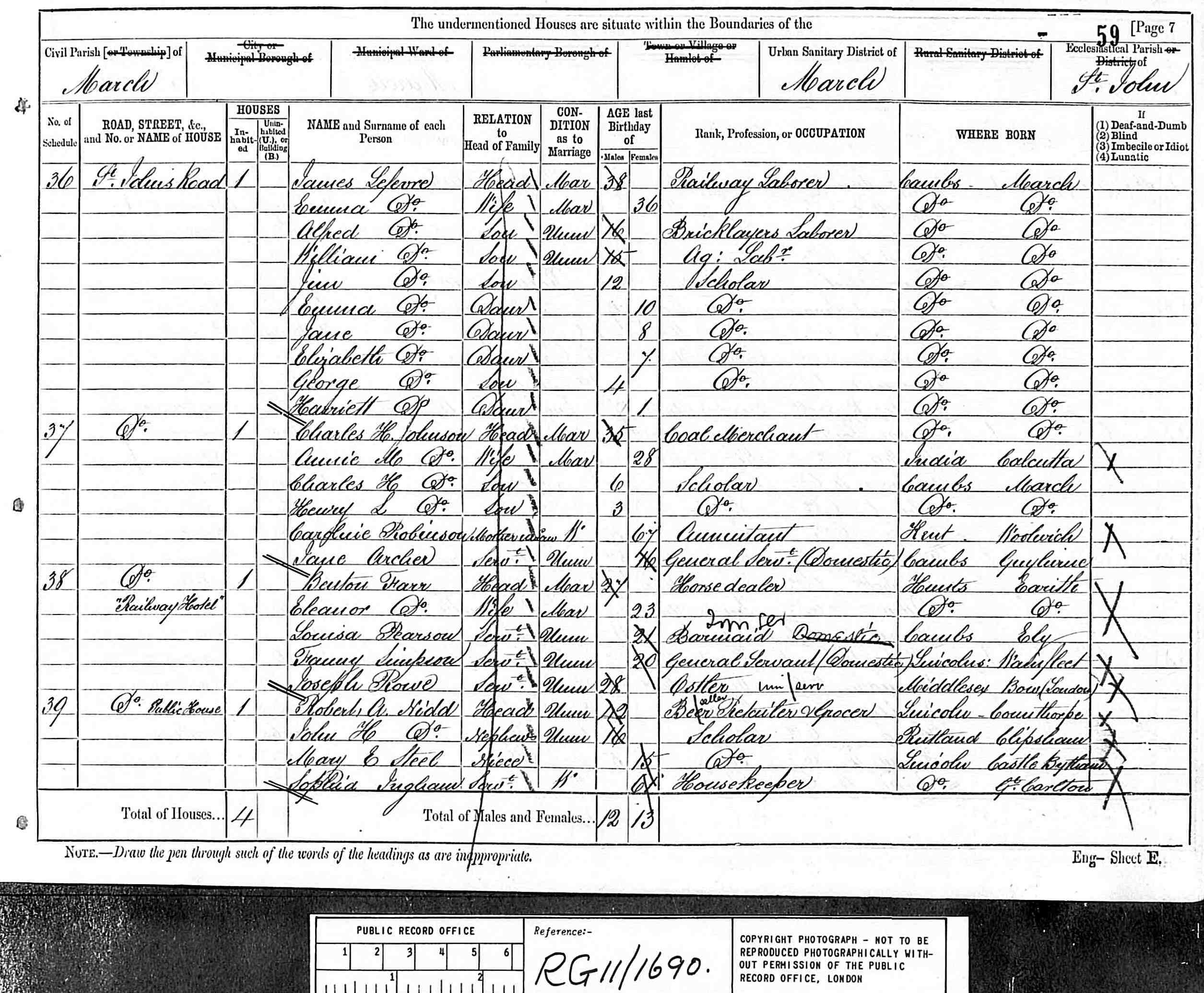 • Occupation: Farmer, 1871, March, St. Johns. 1 • Lived at: Railway Hotel, Public House, 1881, March, St. Johns. 7