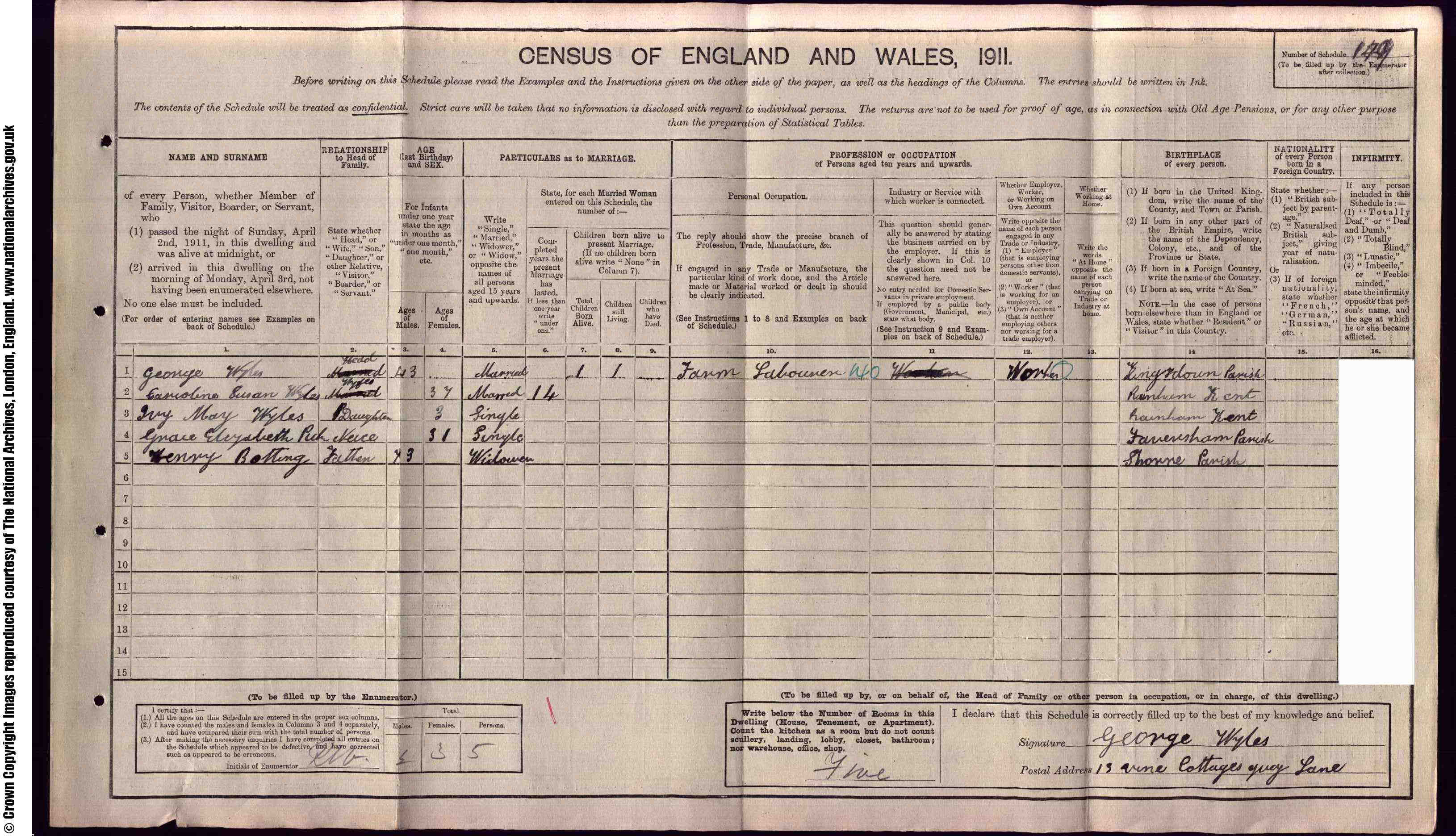 • Lived at: 13 Vine Cottages, Quay Lane, 1911, Milton, Kent, England.