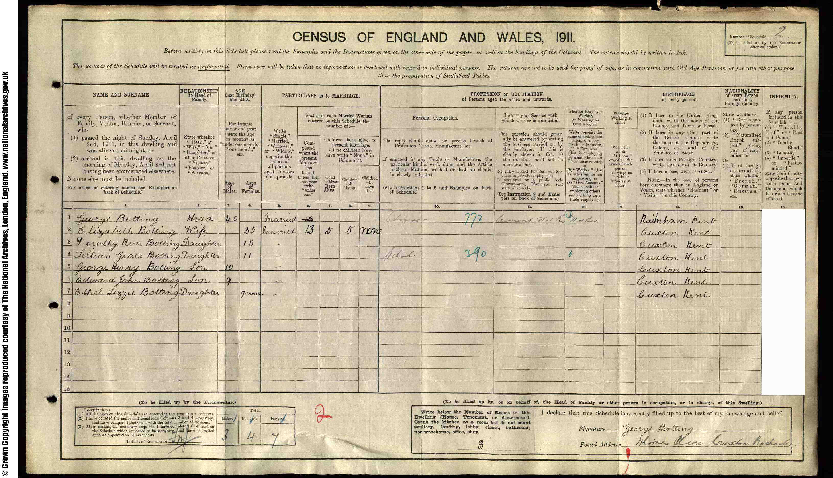 • Lived at: 5 Portland Row, 1911, Halling, Kent. |