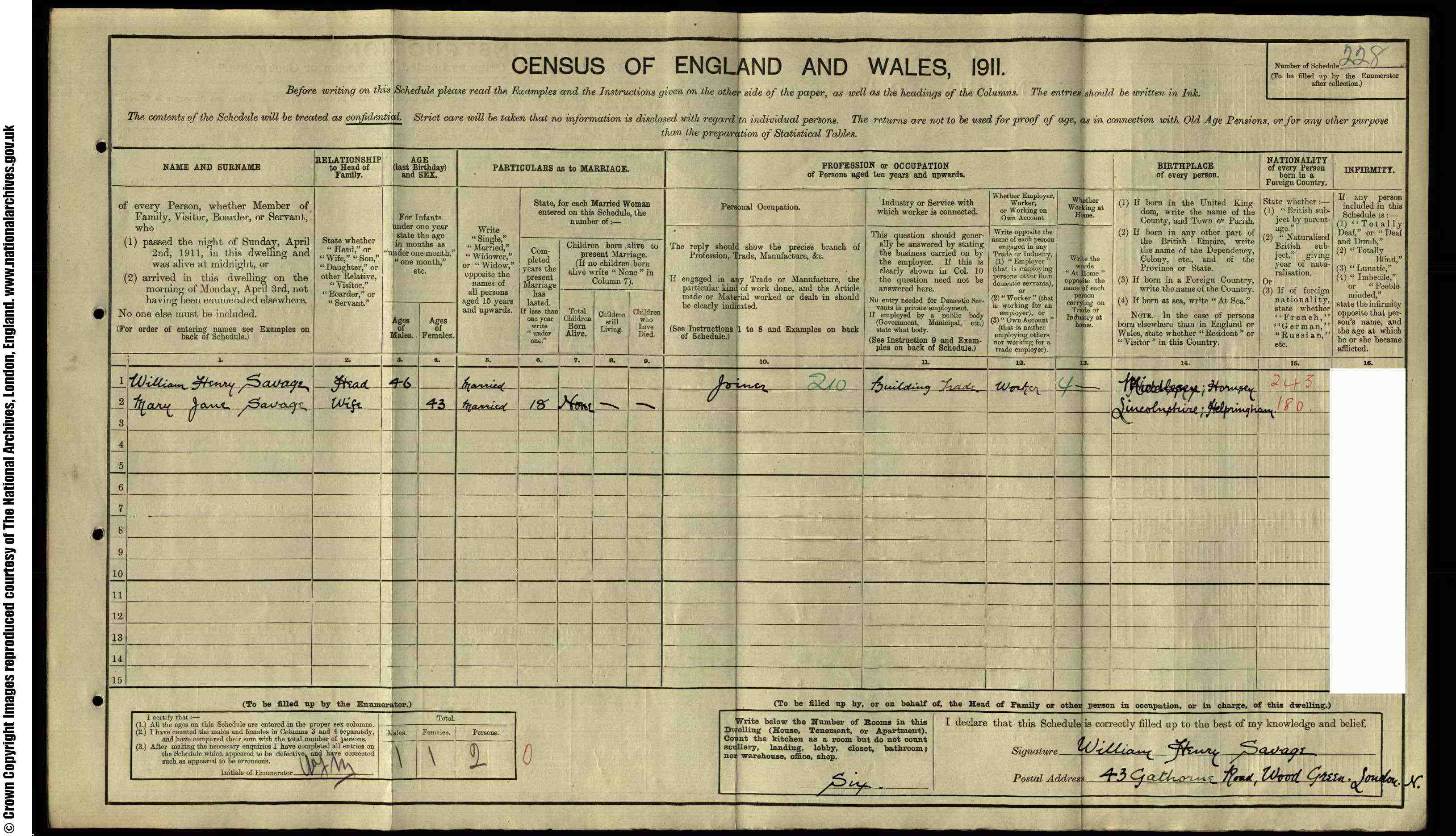 Mary married William Henry Savage on 19 Mar 1893 in Hornsey, Middlesex. (William Henry Savage was born on 20 Mar 1865 in Hornsey,, baptized on 2 Jan 1870 in Hornsey, London and died after 1911.)