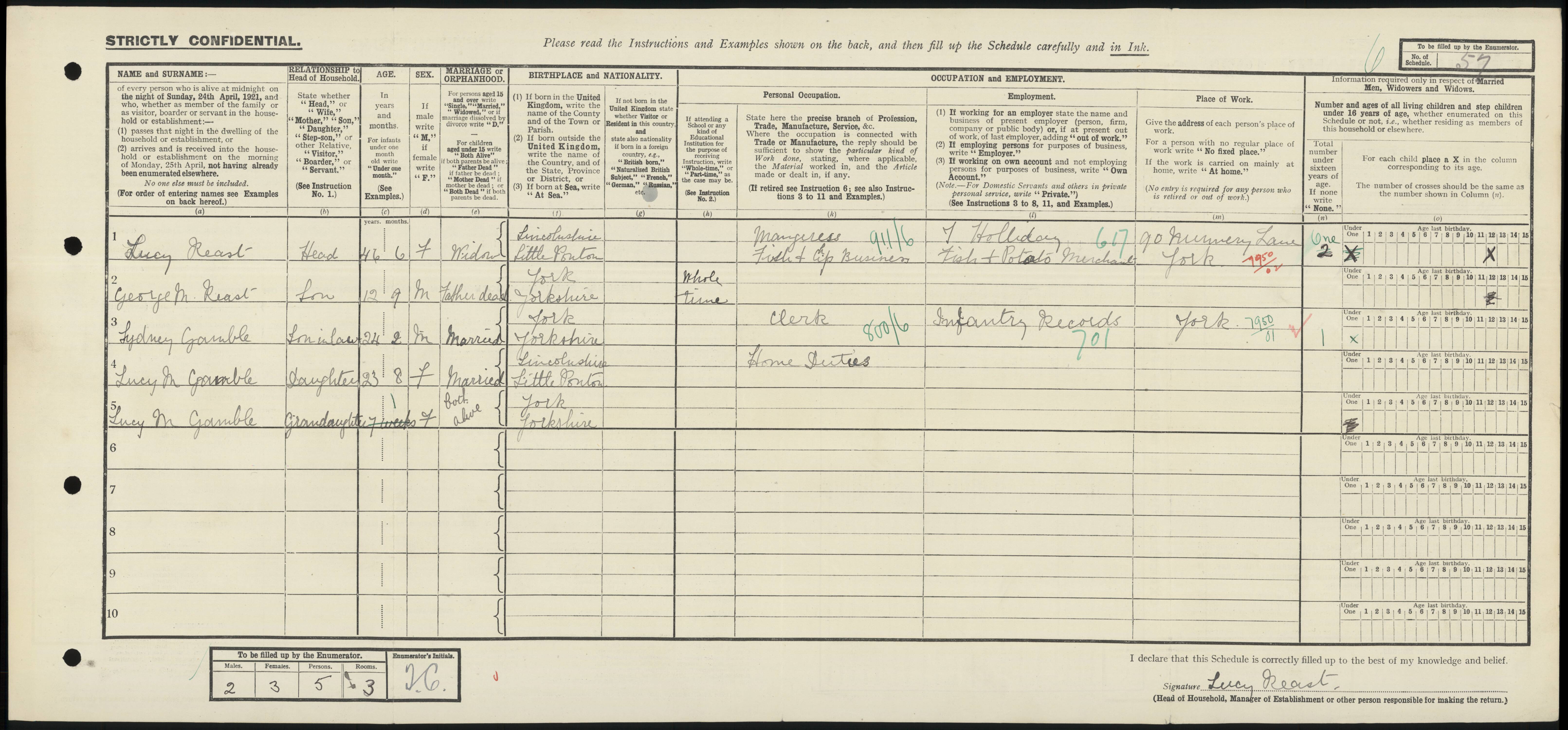 • Occupation: Manageress, Fish and Chip Business, 1921, York, Yorkshire, England.