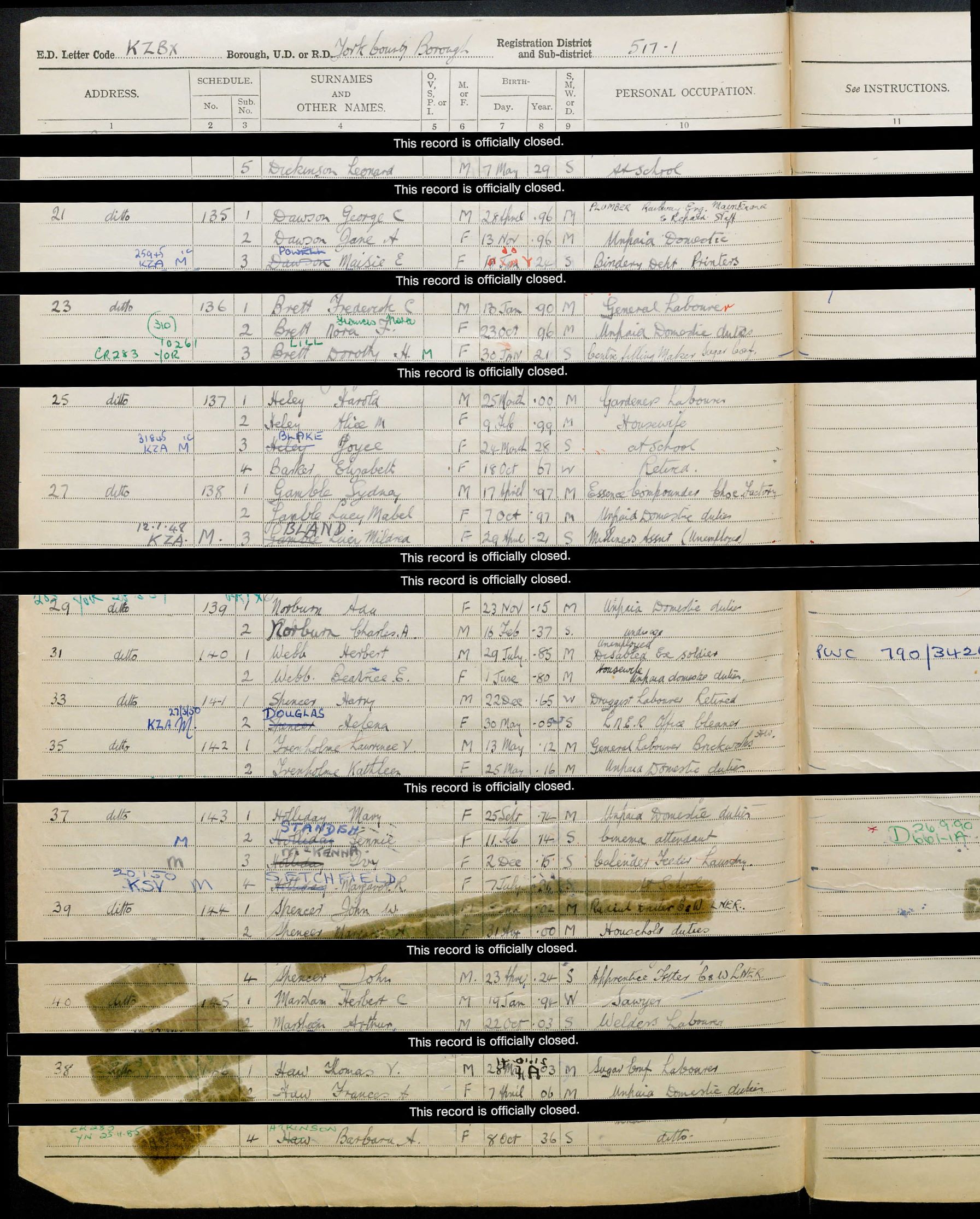 • Lived at: Burrell Avenue, 1939, York, Yorkshire, England.
