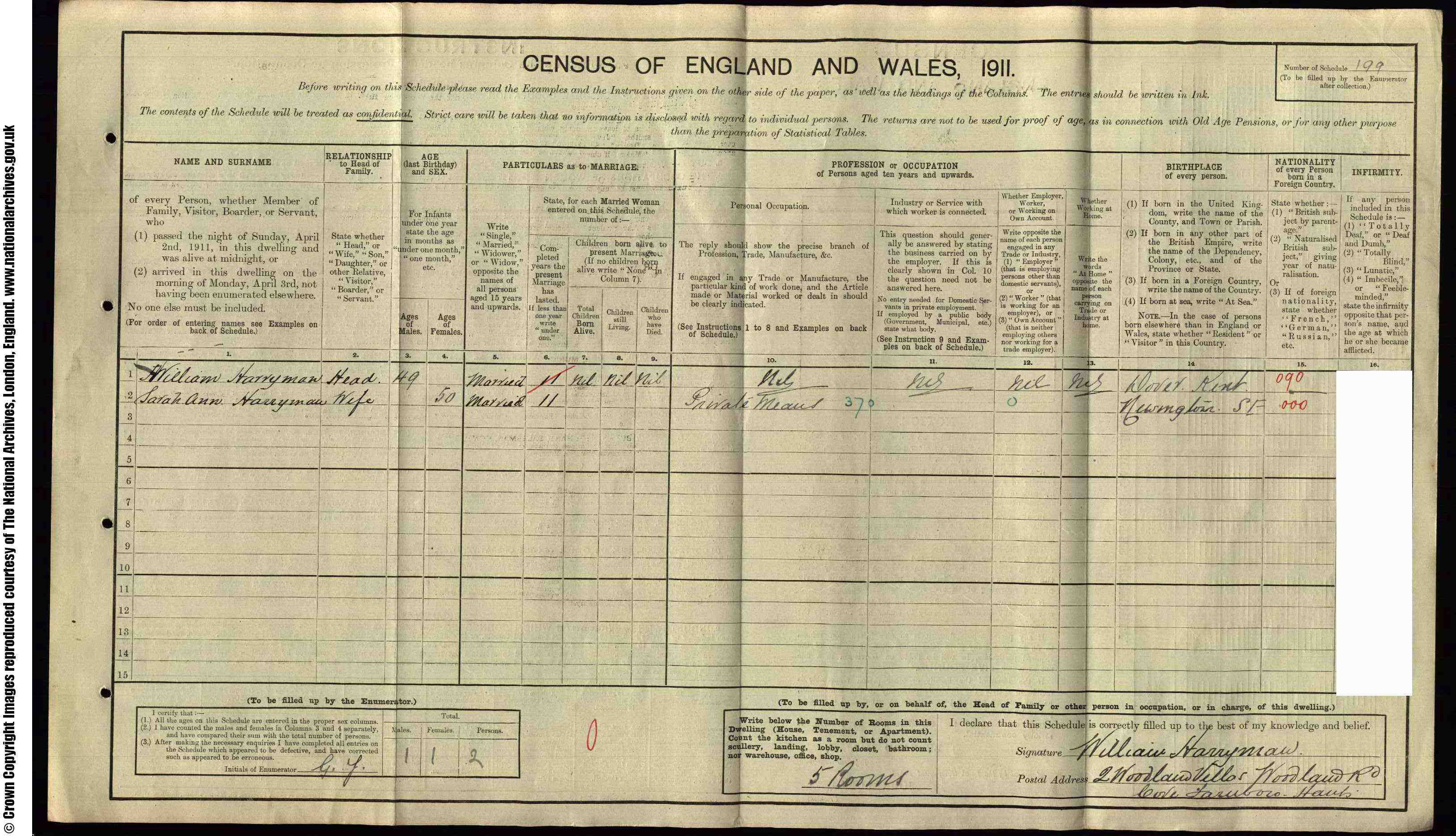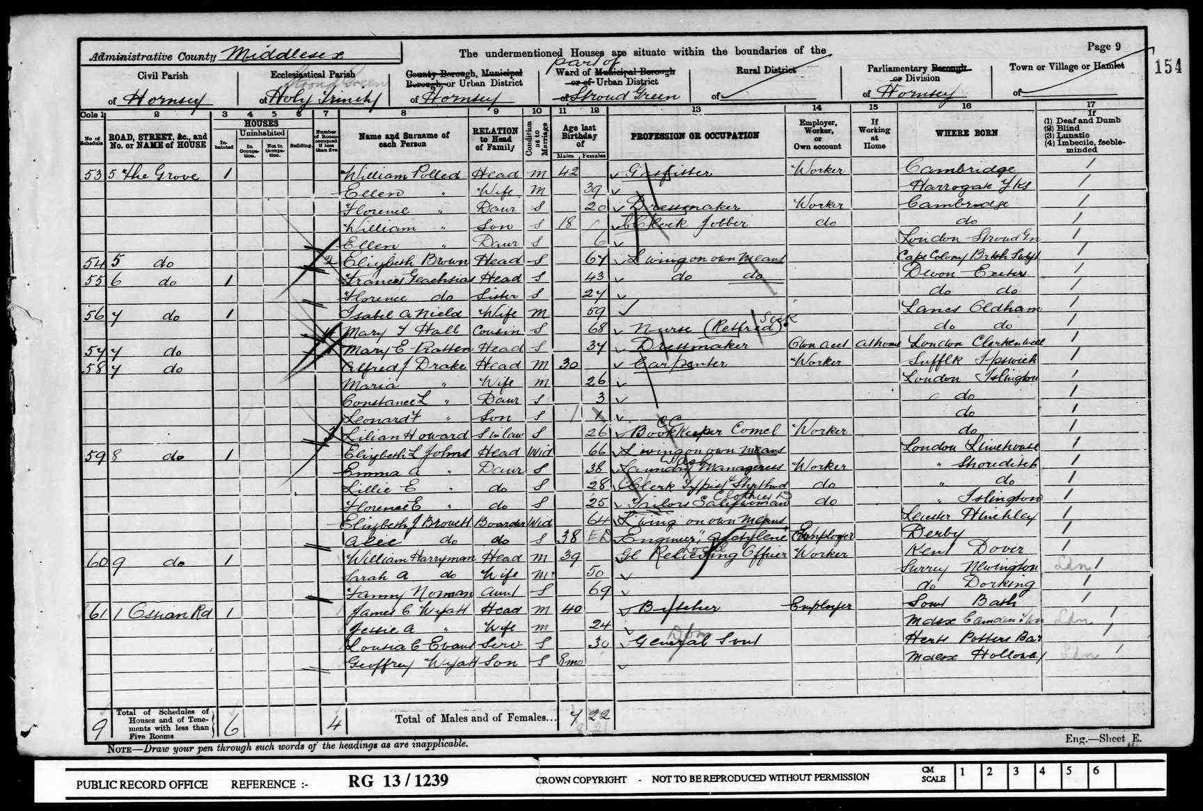 • Occupation: GE Relieving Officer, 1901, Hornsey, Middx.