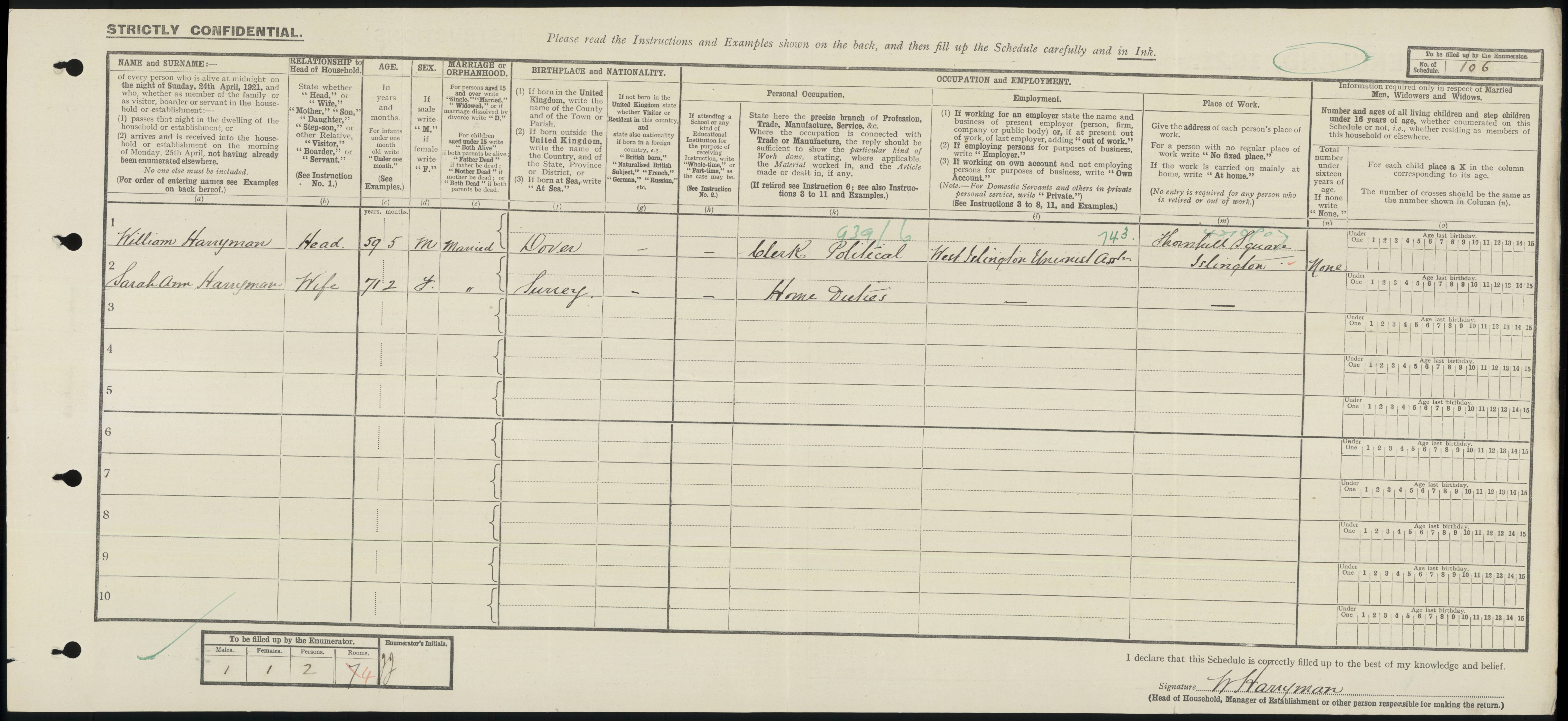 • Occupation: Clerk Political, 1921, Islington. Employer: West Islington unionist assn