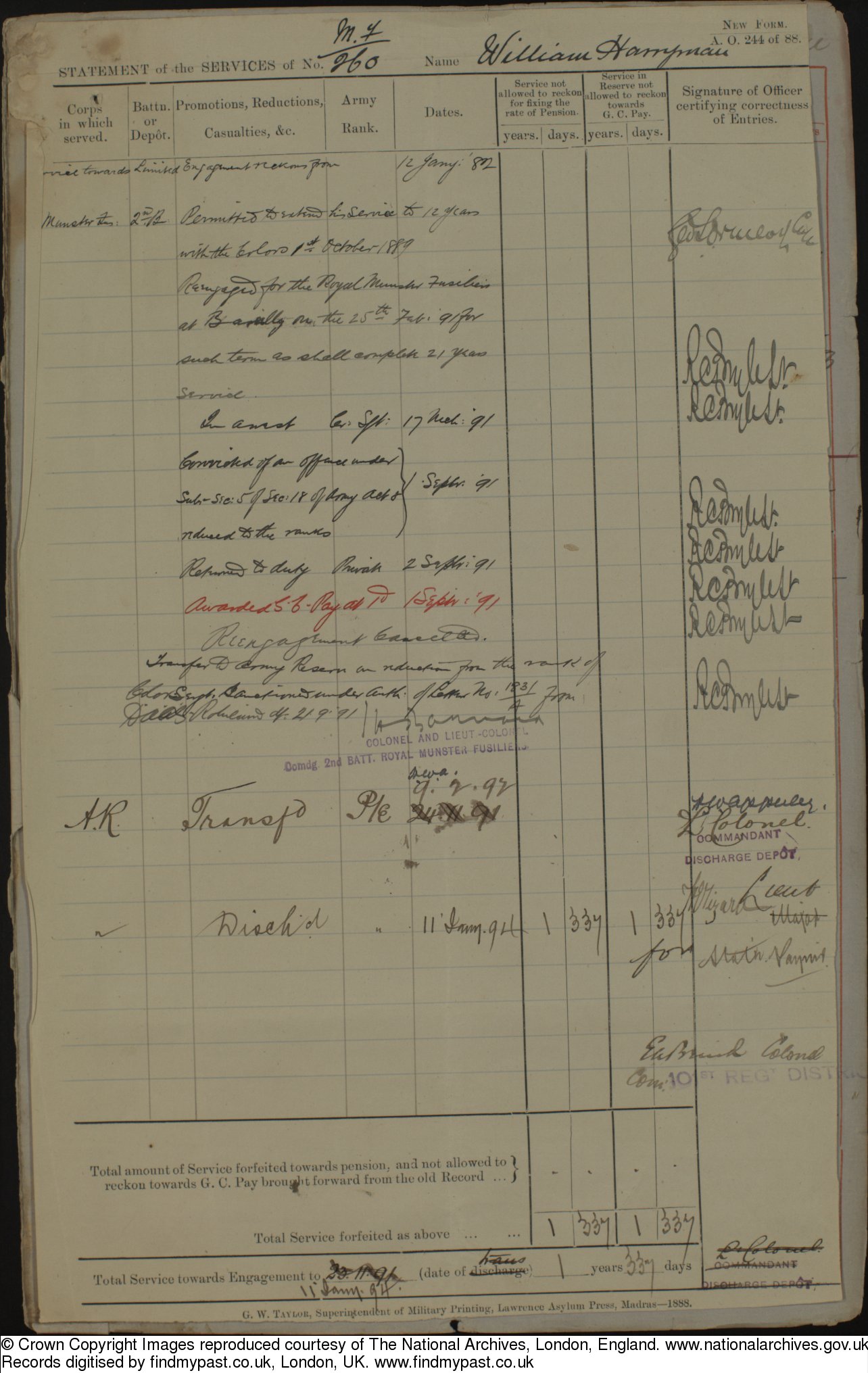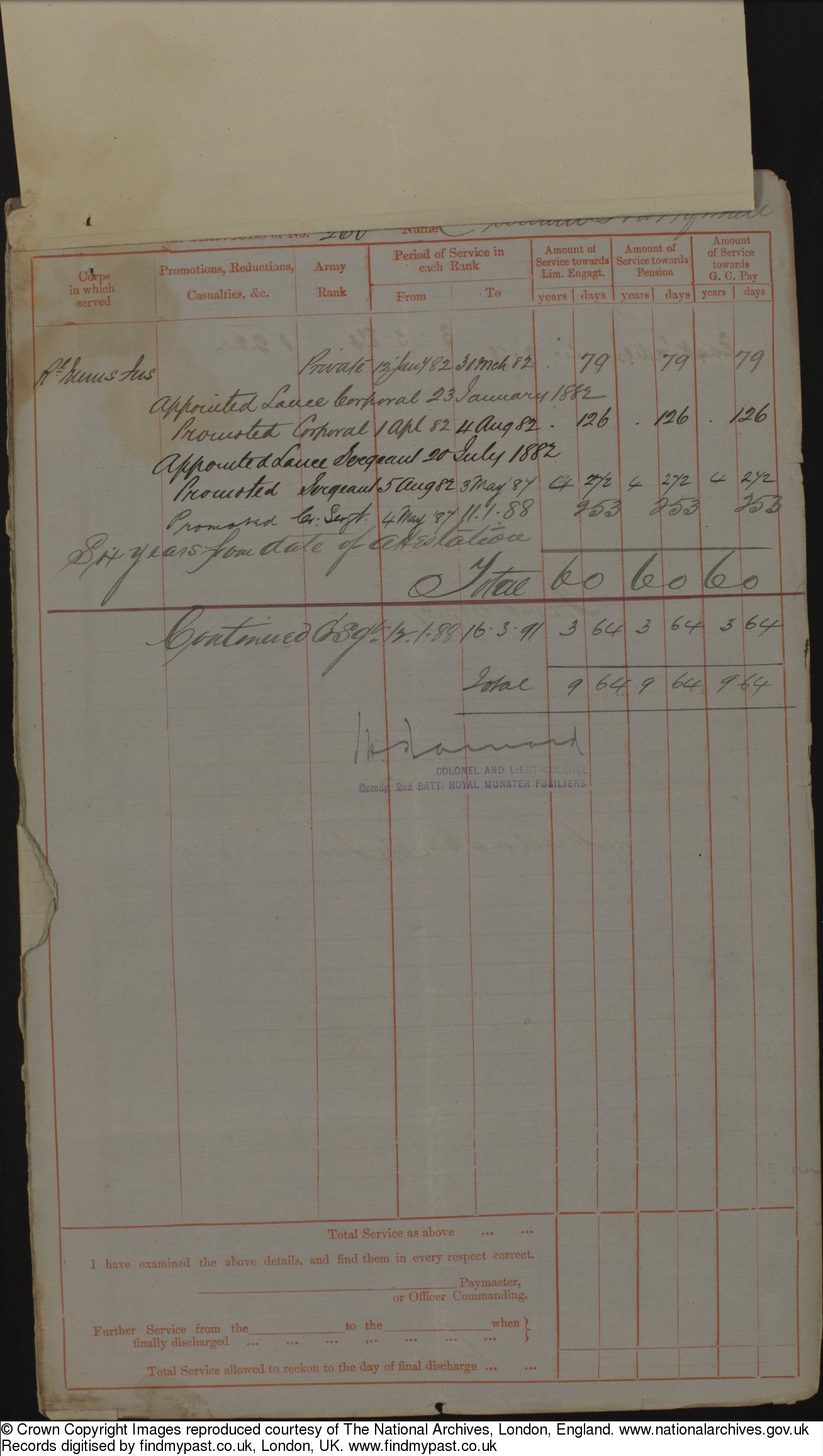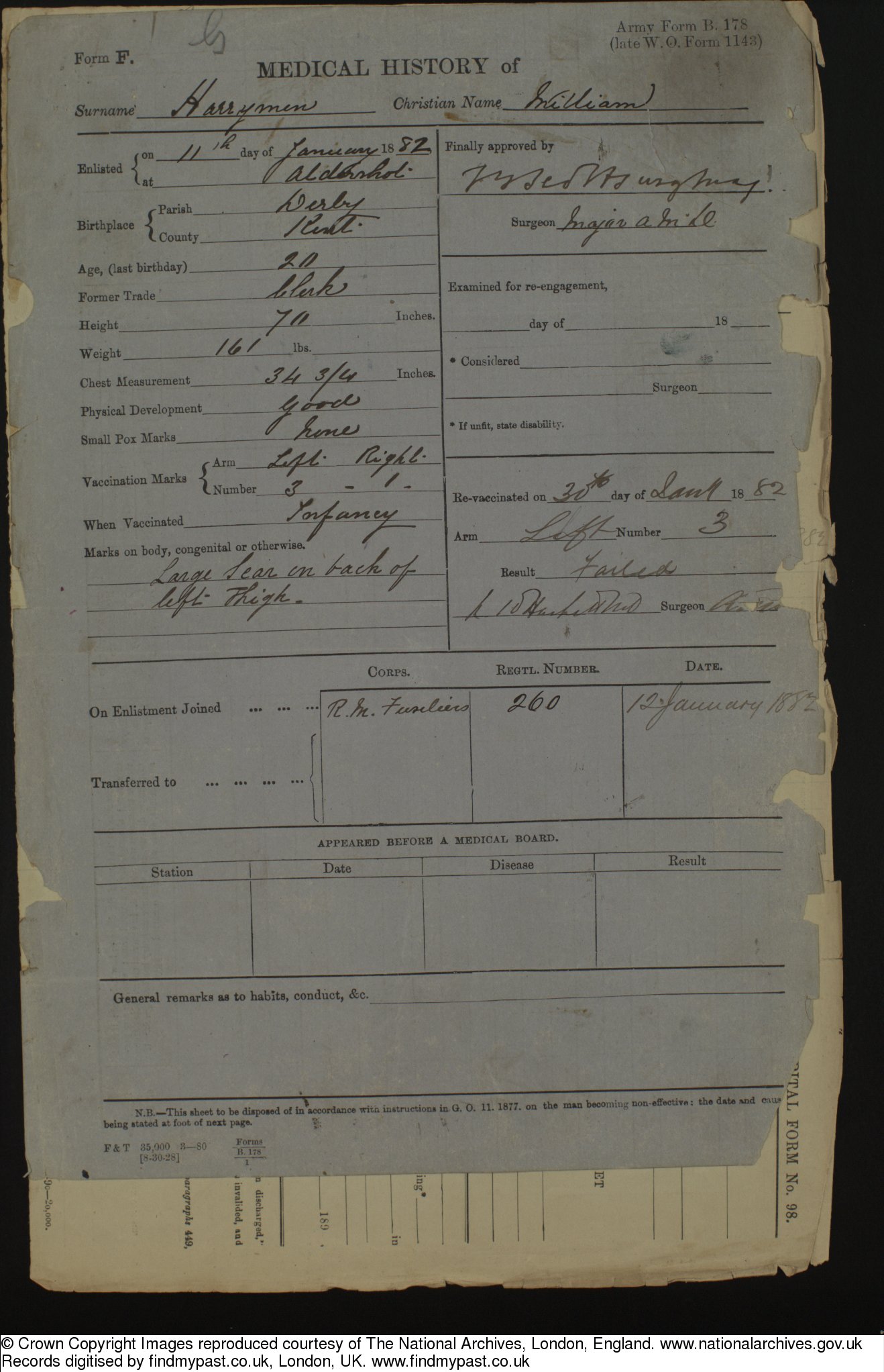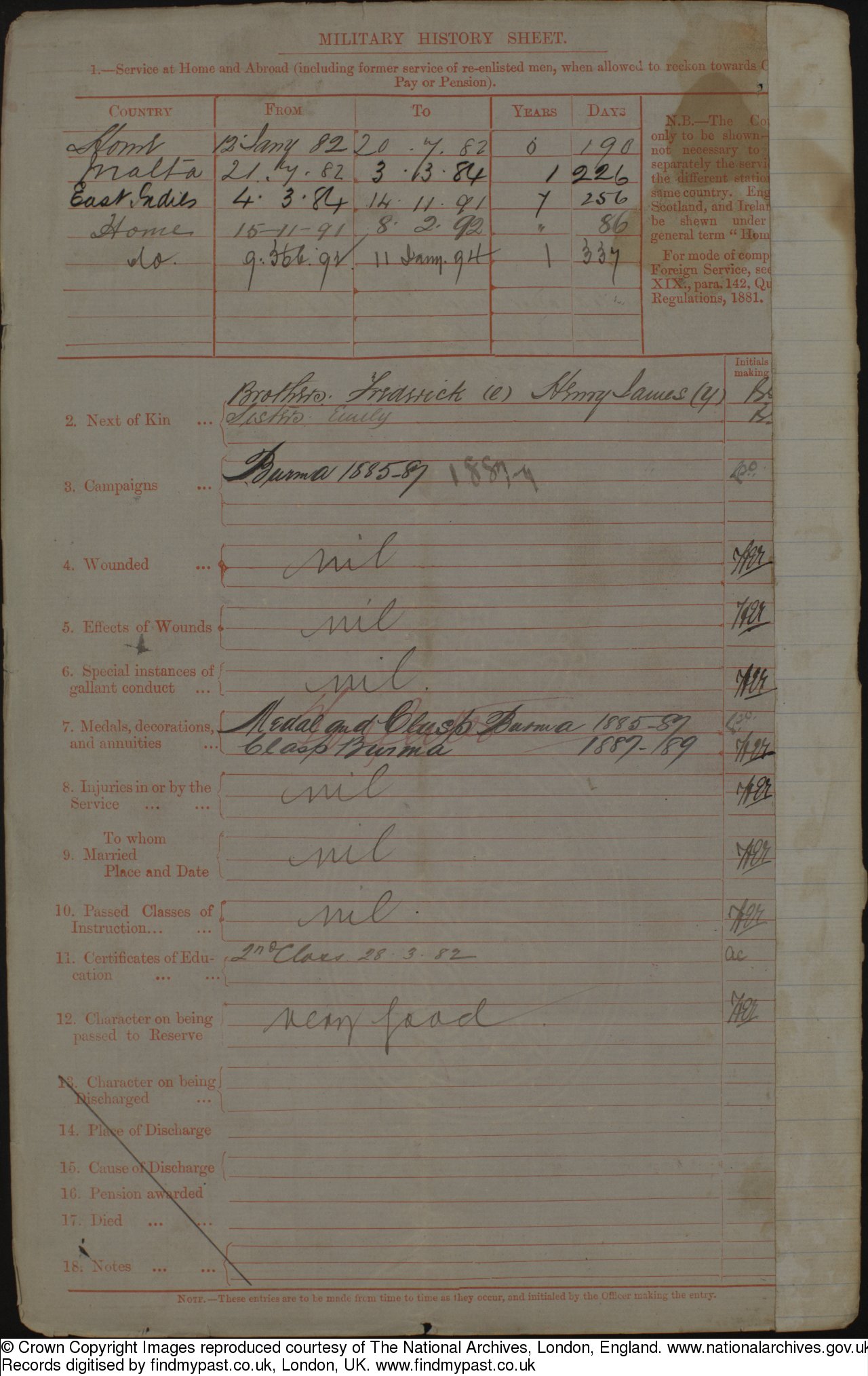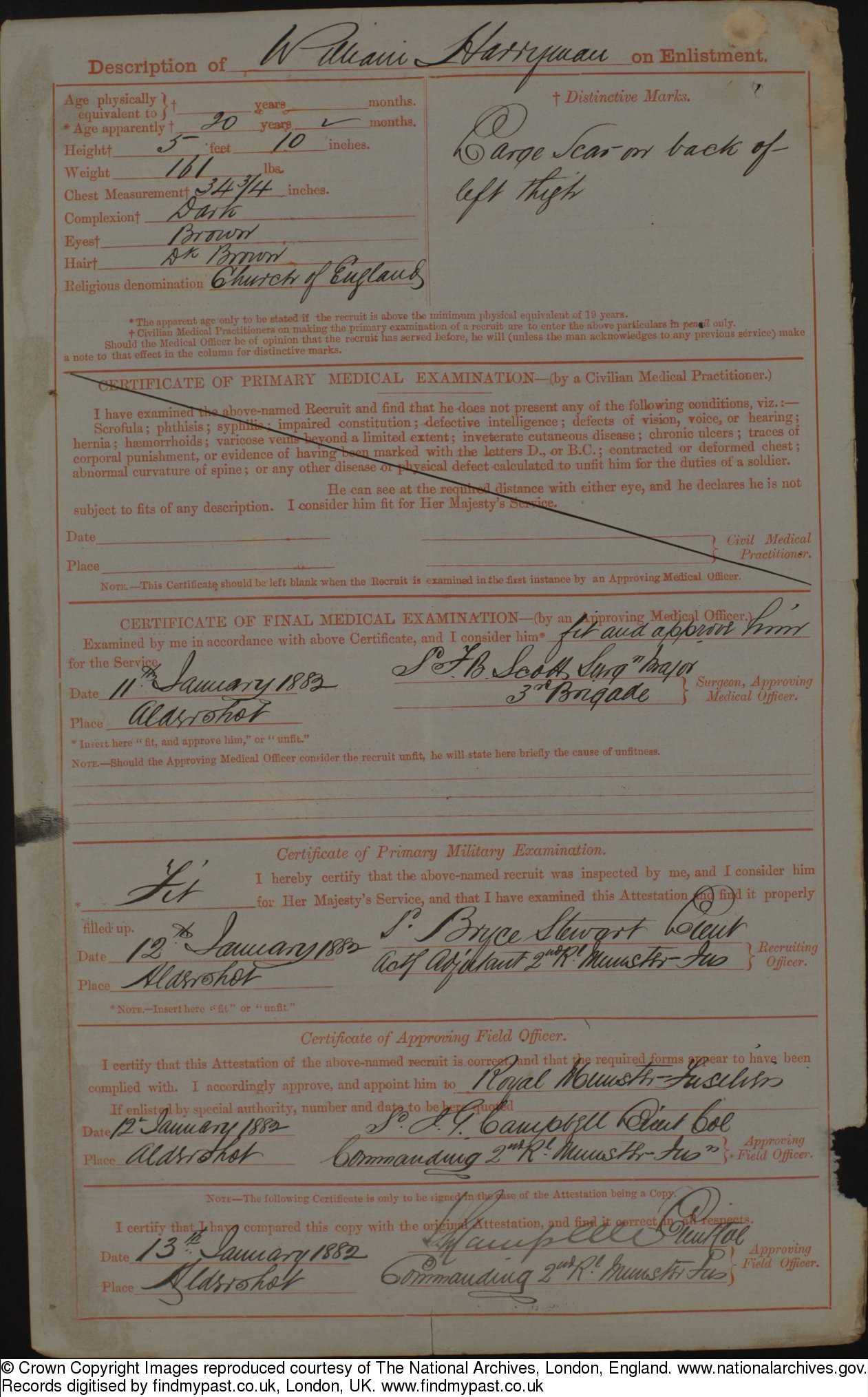 • Enlisted: Enlisted in the Army, 1882, Aldershot, Hampshire, England.