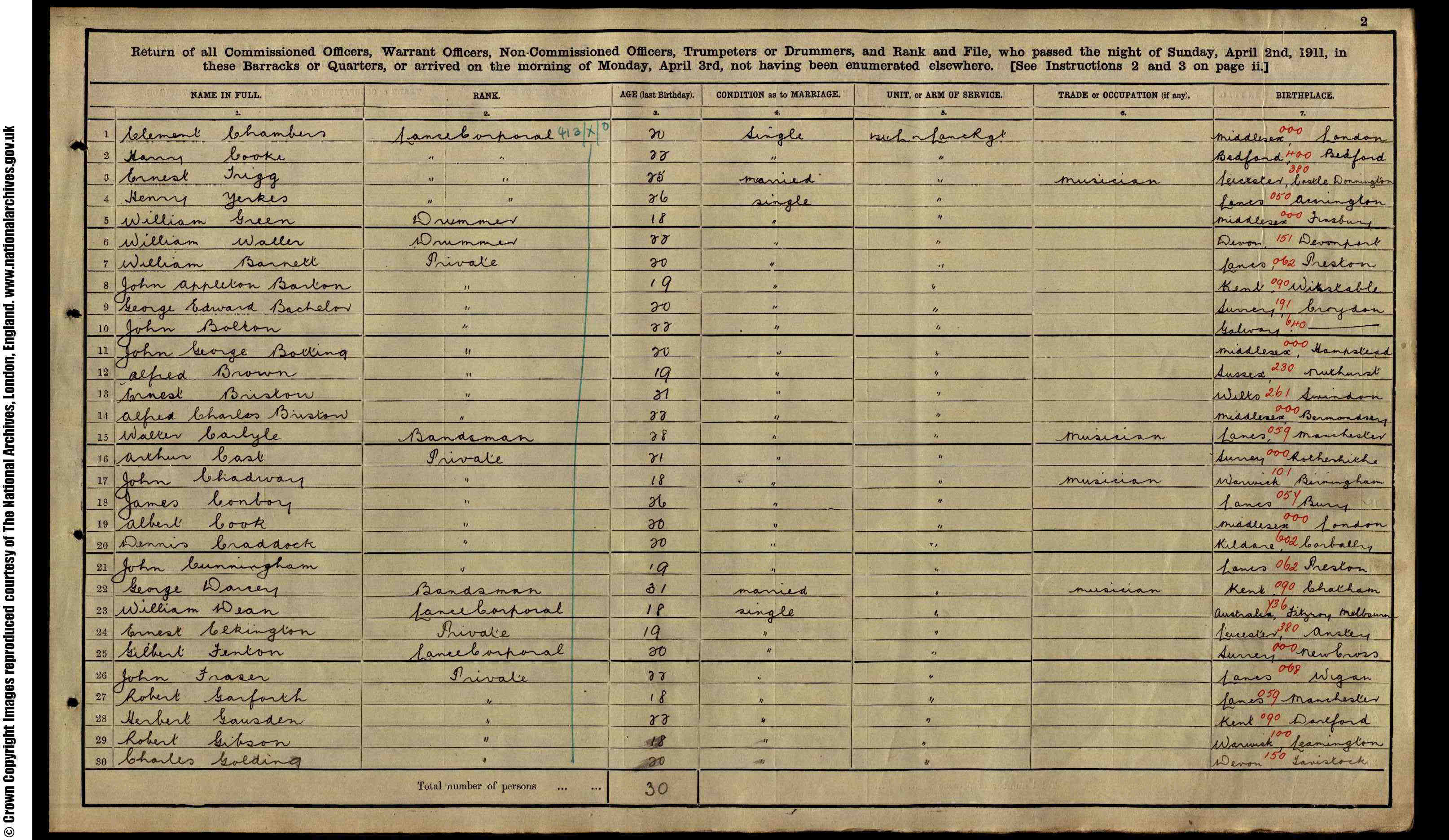 • Occupation: Private, 1911, Andover, Hampshire, England.