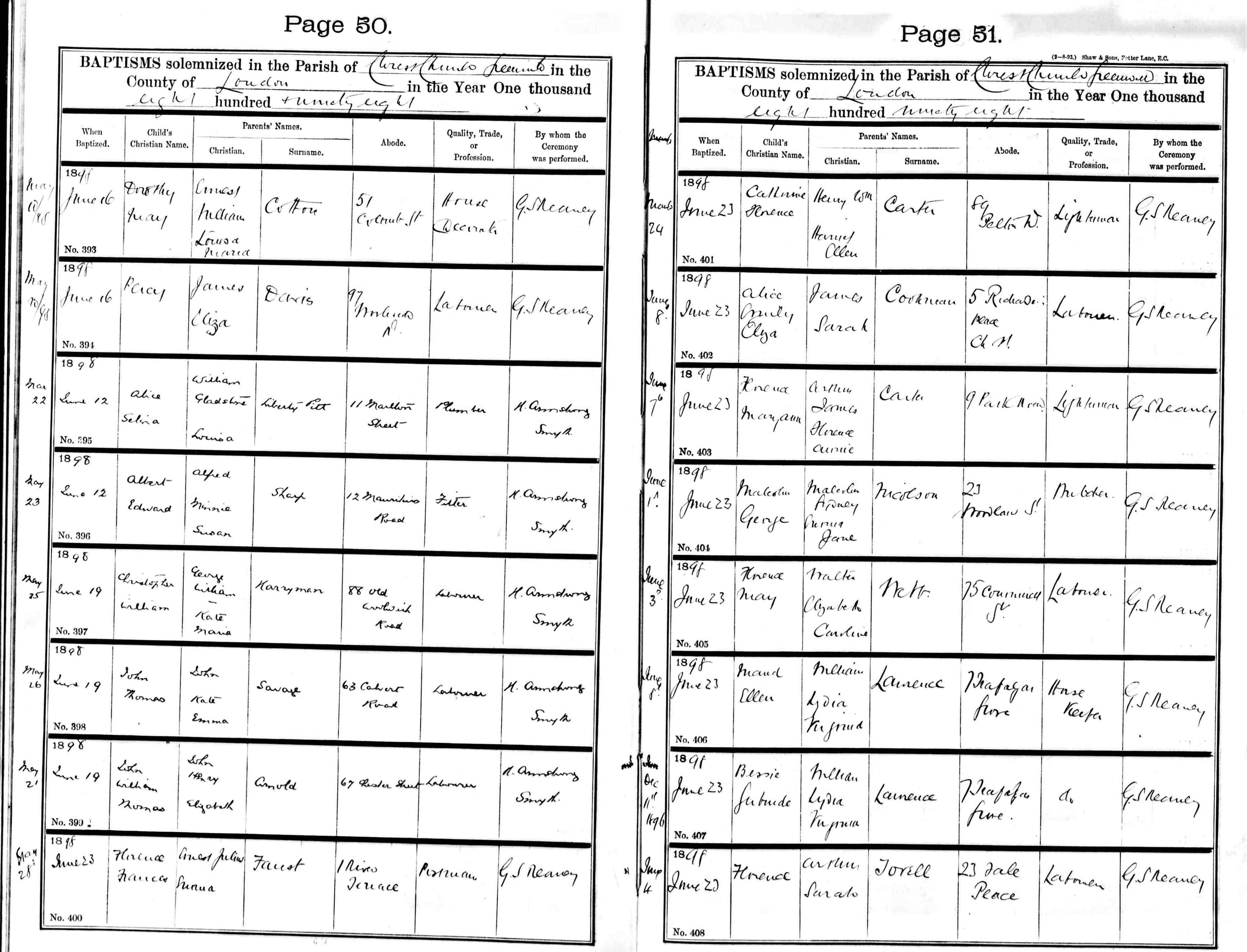 Find My Past, "Parish Records Collection," database(accessed 30 Jul 2010), Christopher WIliamHarryman Baptism; East Greenwich Christchurch baptisms 1868-1912. Cit. Date: 30 Jul 2010. Surety: 4; SSurname: Home | Table of Contents | Surnames | Name List This website was created 19 Jul 2024 with Legacy 10.0, a division of MyHeritage.com; content copyrighted and maintained by melsmorris@gmail.com