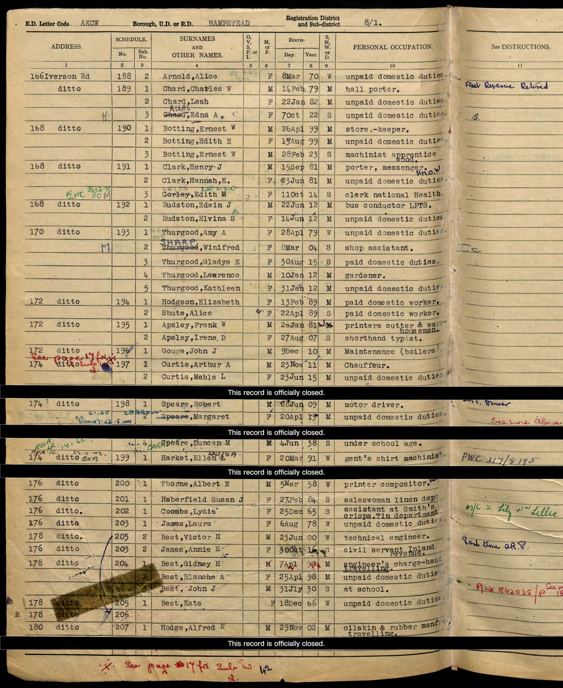• Occupation: Storekeeper, 1939, Hampstead, London.