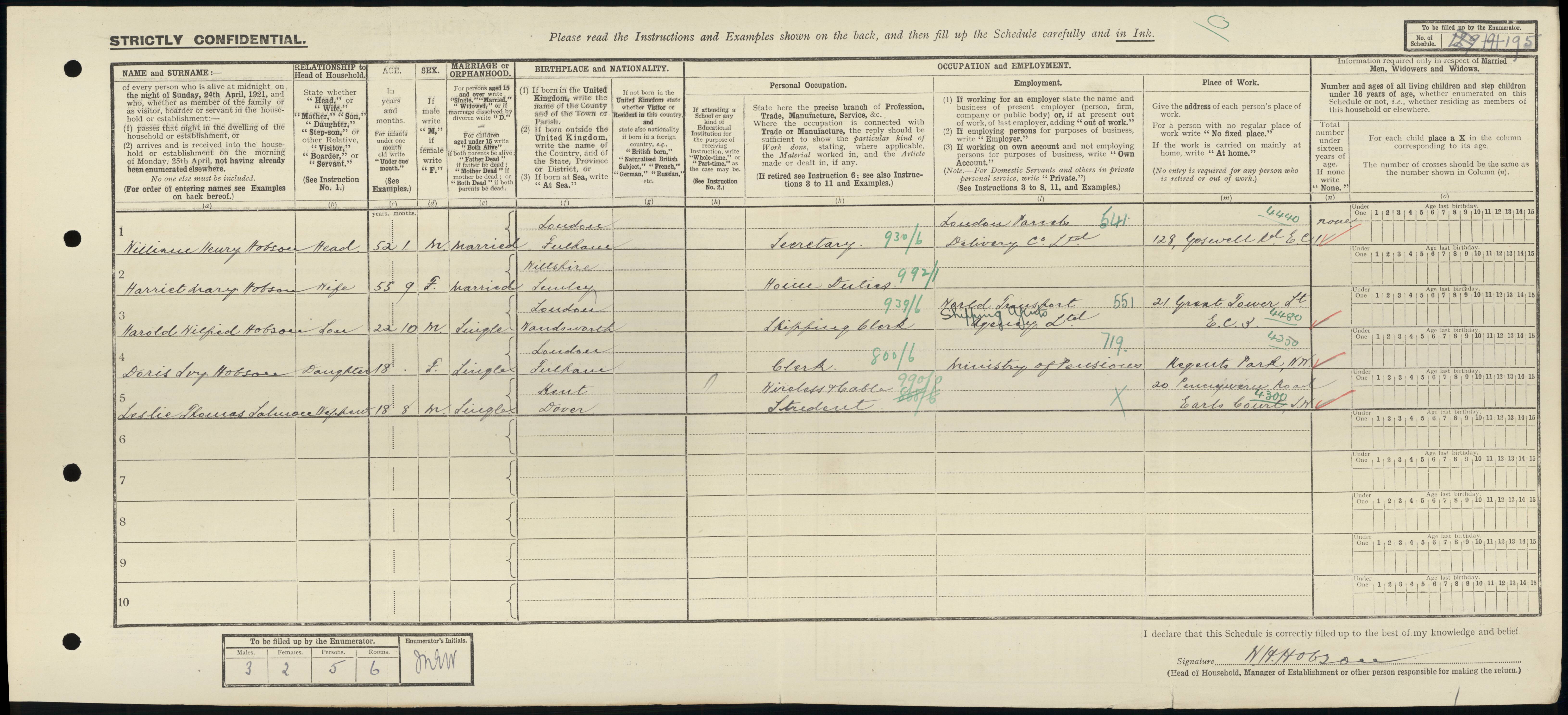 • Lived at: 59 Chipstead Street, 1921, Fulham, London & Middlesex, England.
