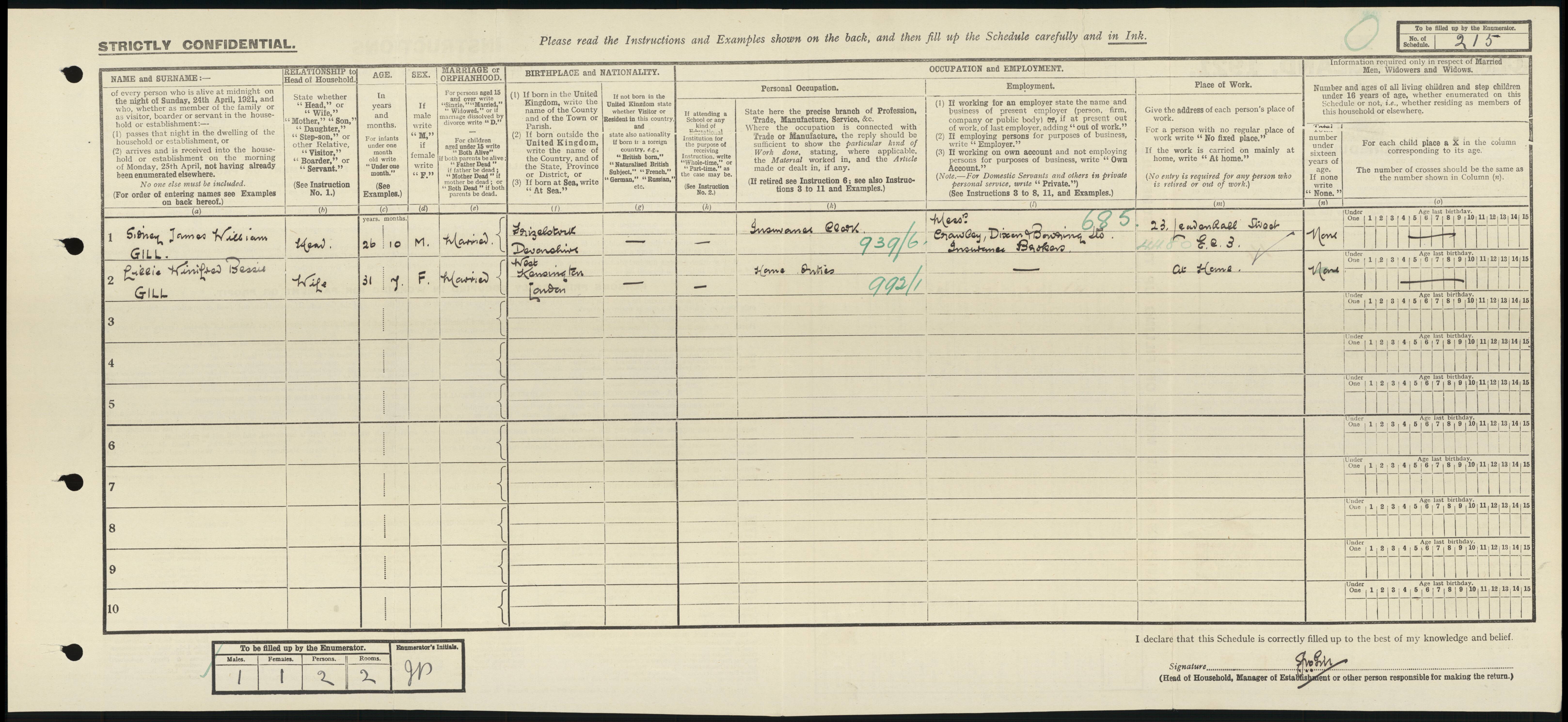 Lilly married Sidney James William Gill on 7 Oct 1916 in Christ Church, Fulham, Hammersmith and Fulham, England. (Sidney James William Gill was born on 7 Aug 1894 and died Dec Q 1966 in Brent, Greater London.)