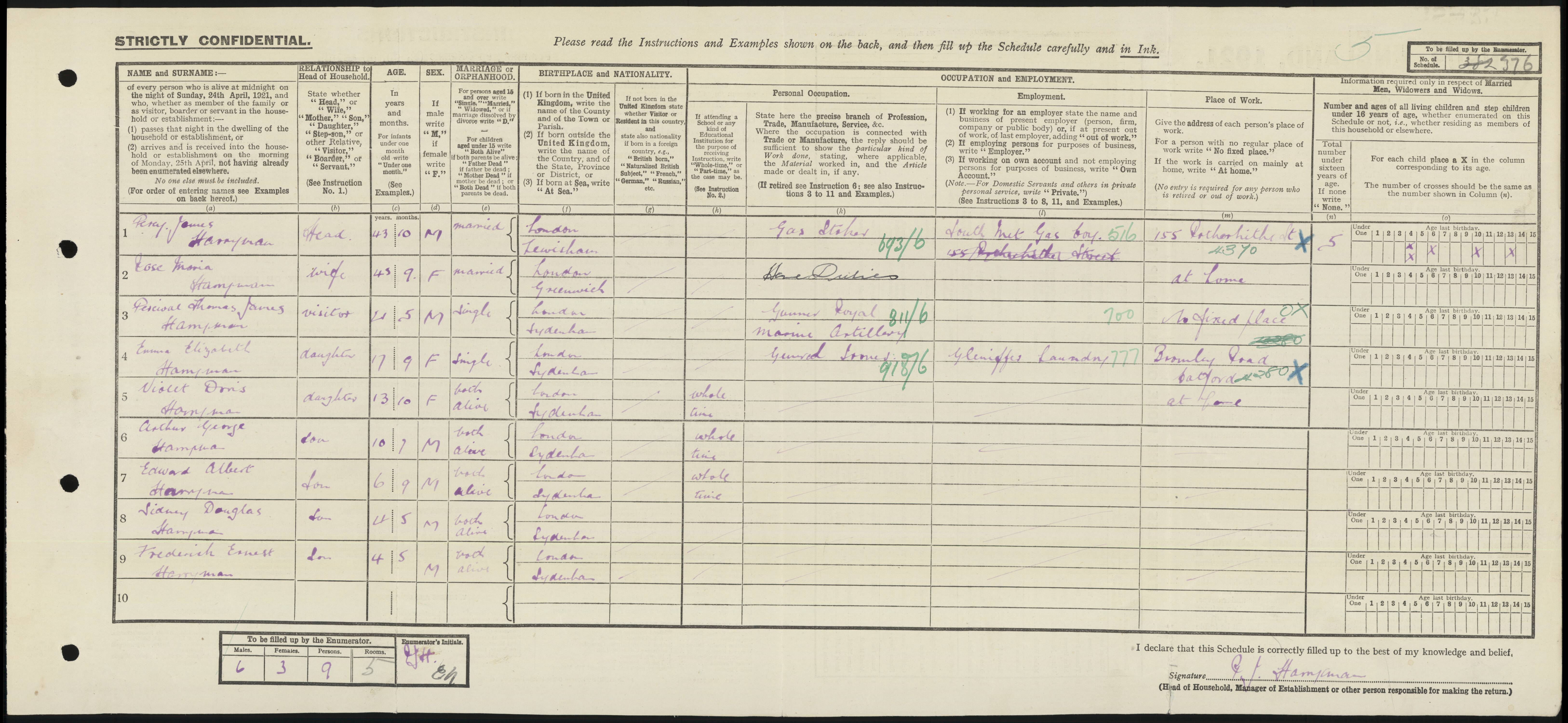 • Lived at: 29 Harlow Square, 1921, Sydenham.