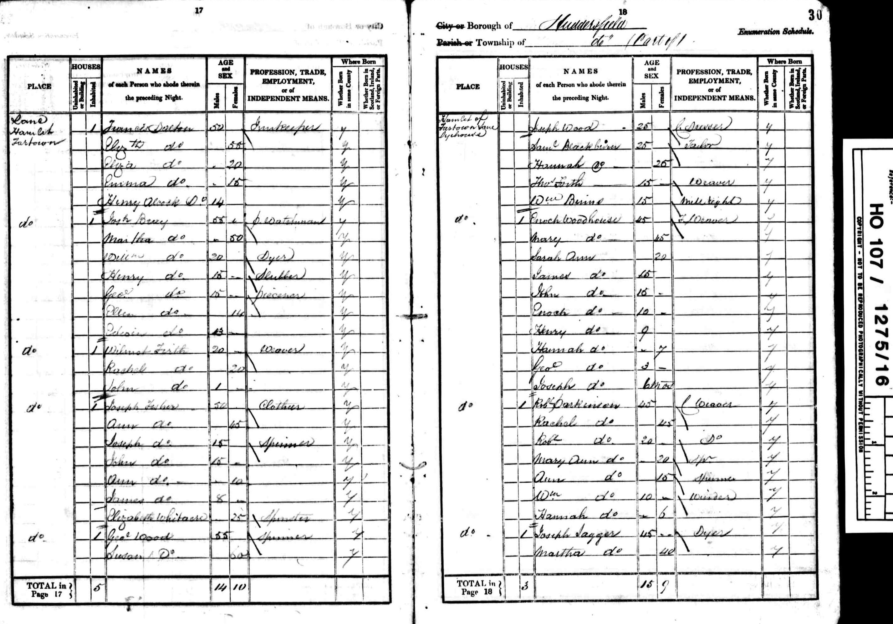 • Lived at: Hamlet of Farstown Lane, 1841, Dyckhouse, Huddersfield, Yorkshire, England. • Occupation: Carpet Weaver, 1841, Huddersfield, Yorkshire, England.