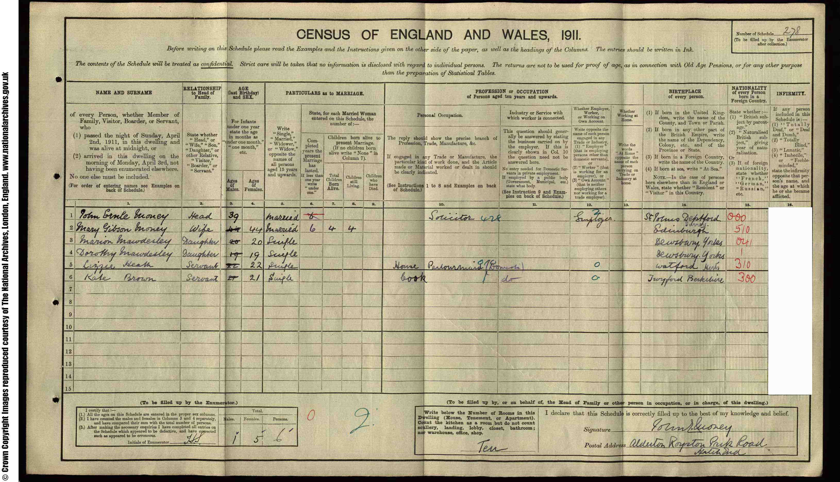 • Occupation: Cook, 1911, Hatch End, Middlesex, England. Worked for John Mooney, Solicitor