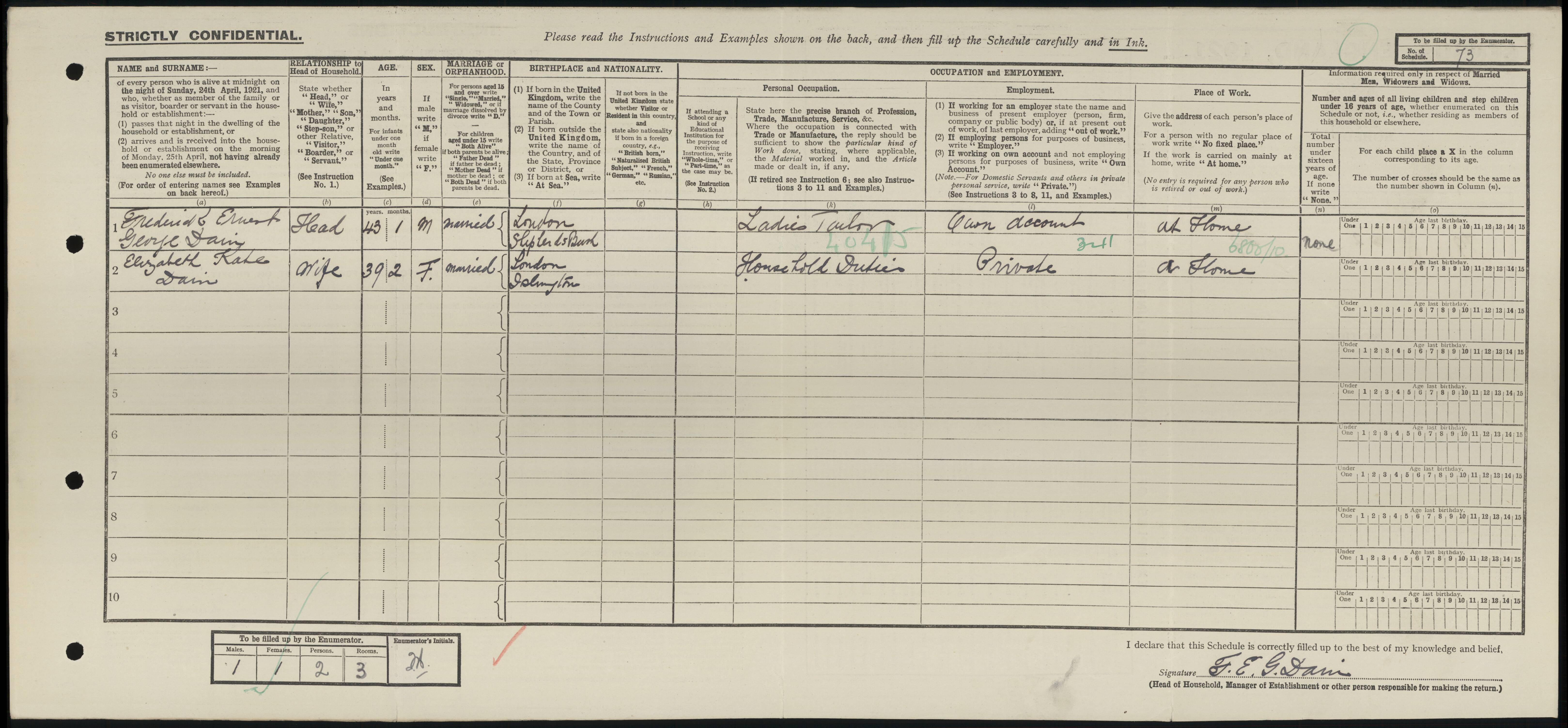 • Occupation: Ladies Tailor, 1921, Brighton, Sussex, England.