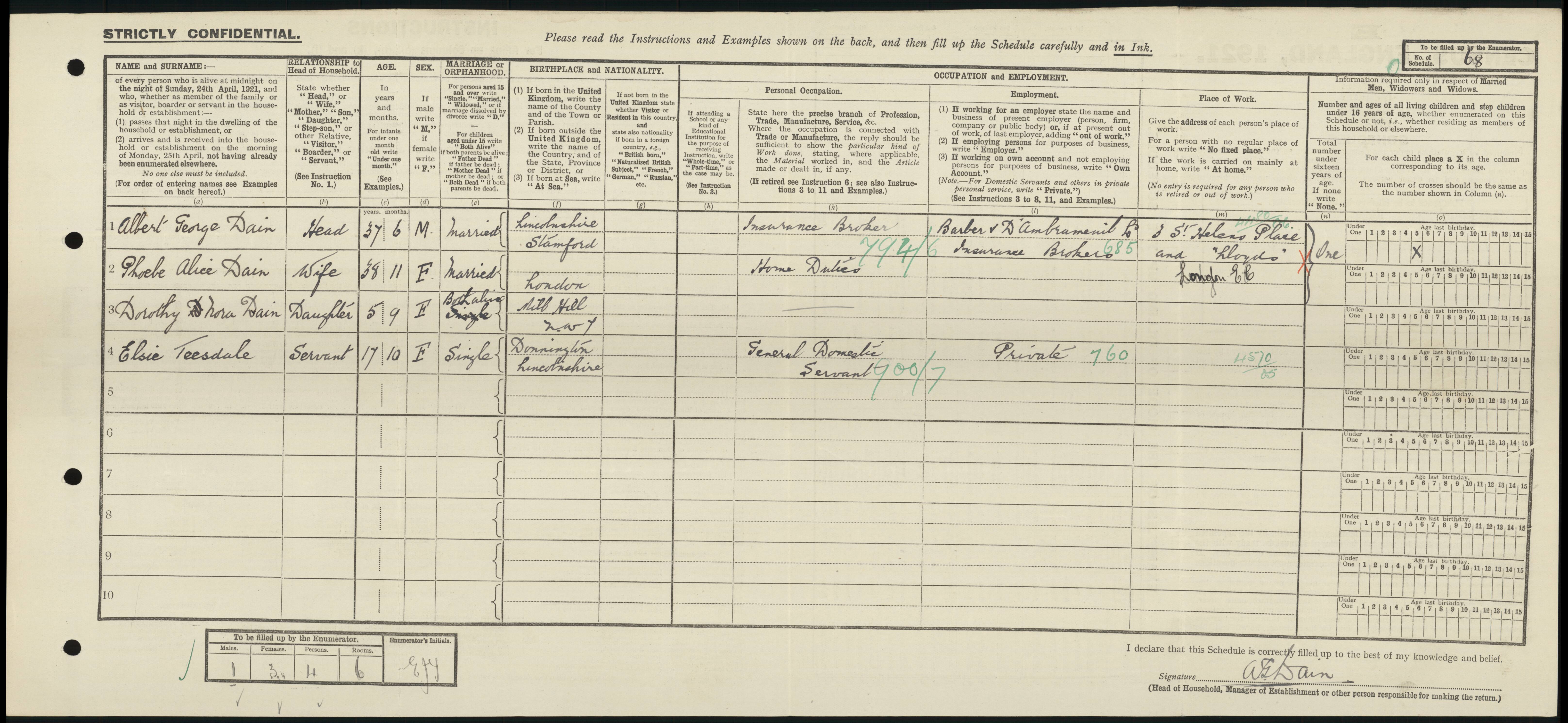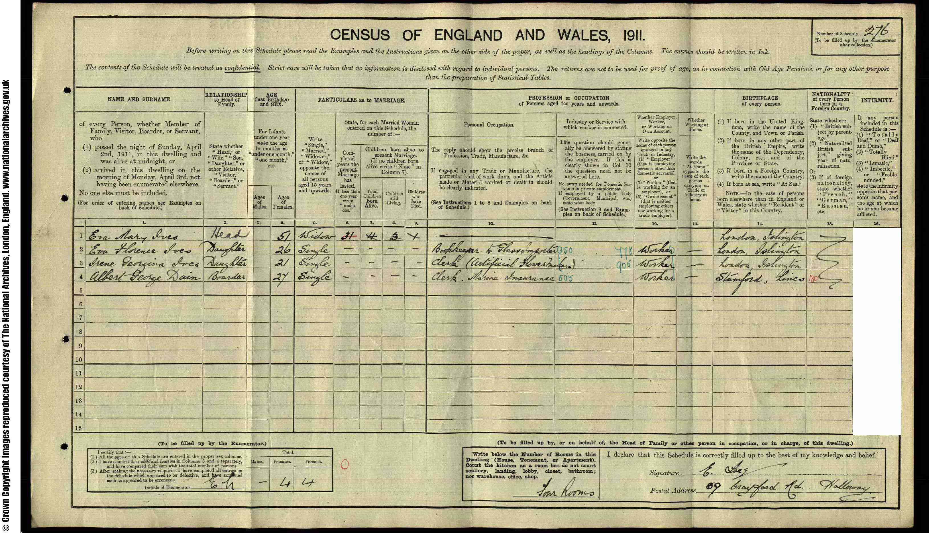 • Occupation: Clerk, Marine Insurance, 1911, Holloway, London.