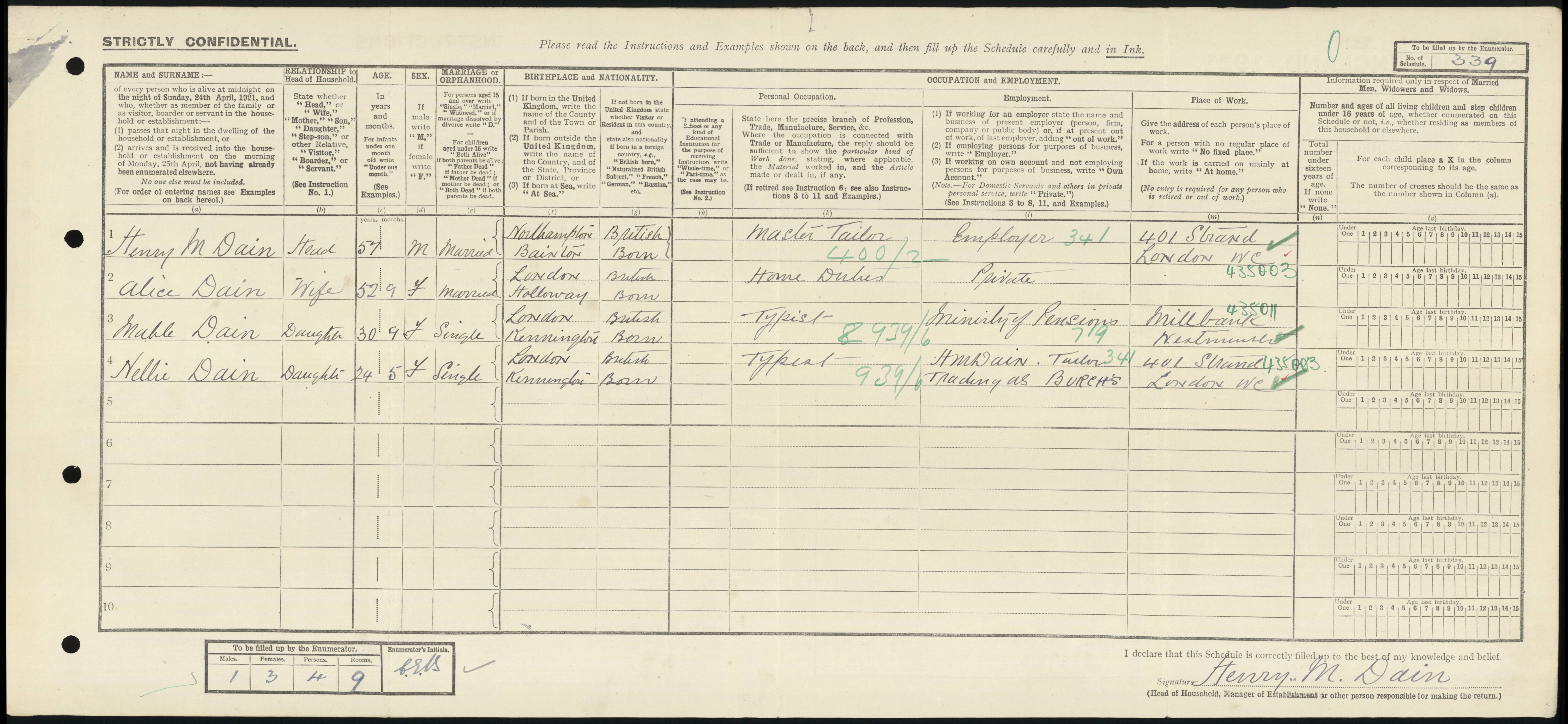 • Occupation: Typist, 1921, Hornsey, Middlesex.