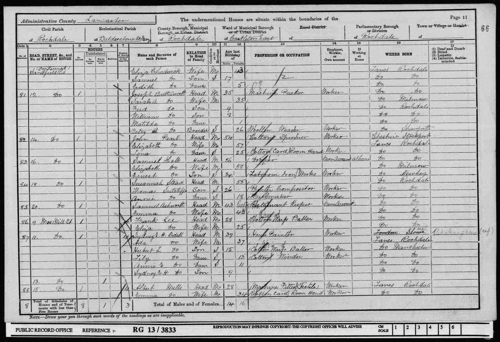 • Lived at: 9 Moss Mill Street, 1901, Rochdale, Lancashire, England.