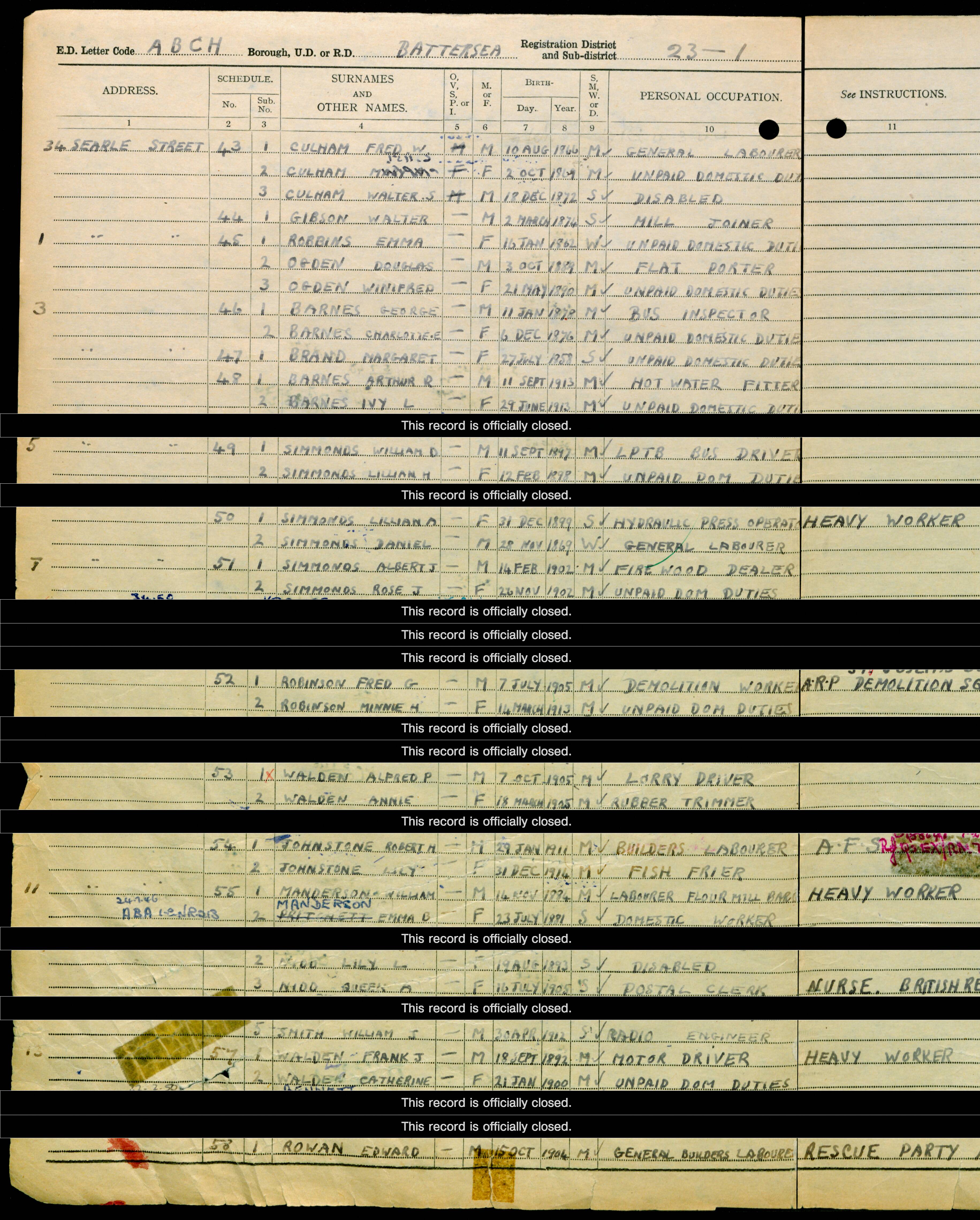 • Lived at: 34 Searle Street, 1939, Battersea, London, Middlesex. • Lived at: 56 Bridge Road, 1945, Chessington, Surrey, England. Frederick married Doris Beach Dec Q 1946 in Islington. (Doris Beach was born circa 1913 and died after 1951.) |