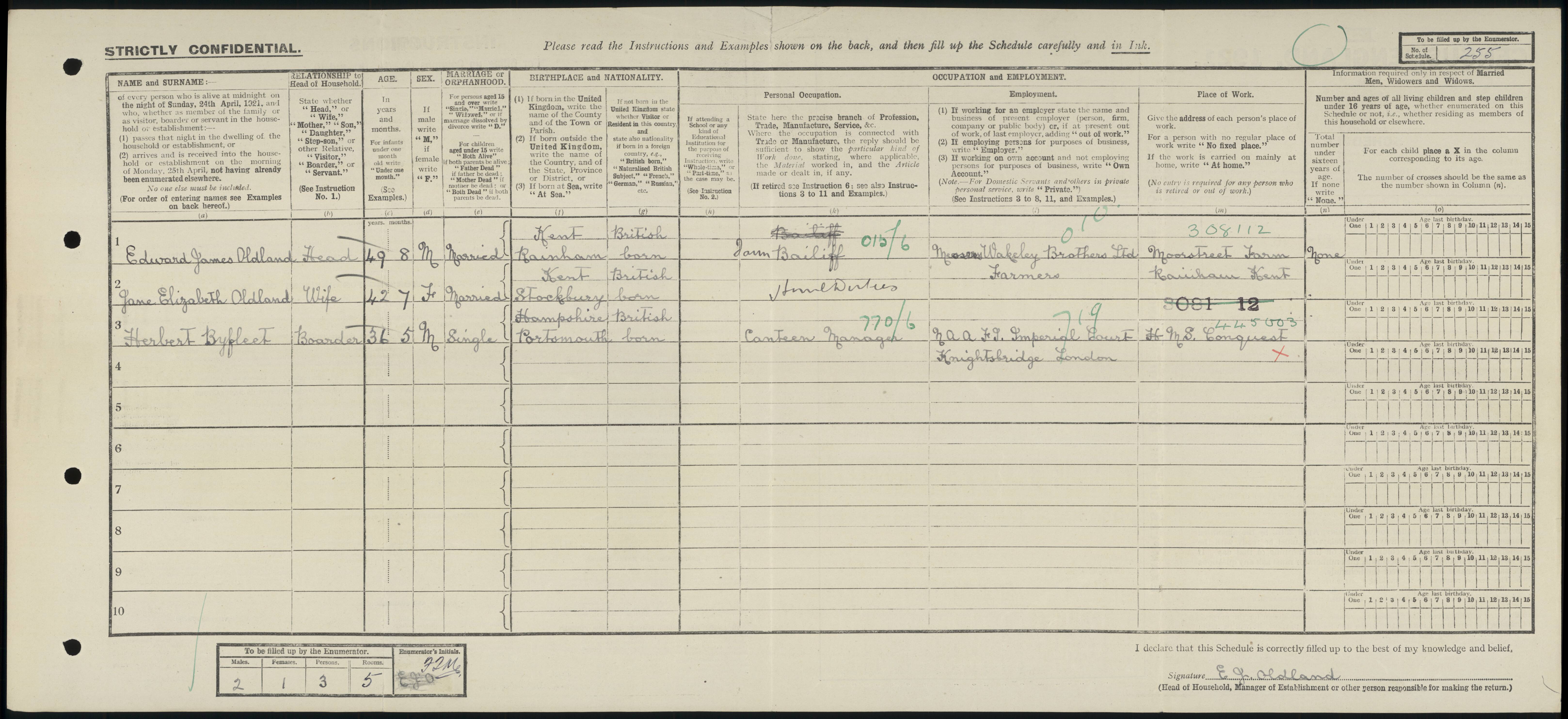 • Occupation: Farm Bailiff, 1921, Rainham, Kent, England.