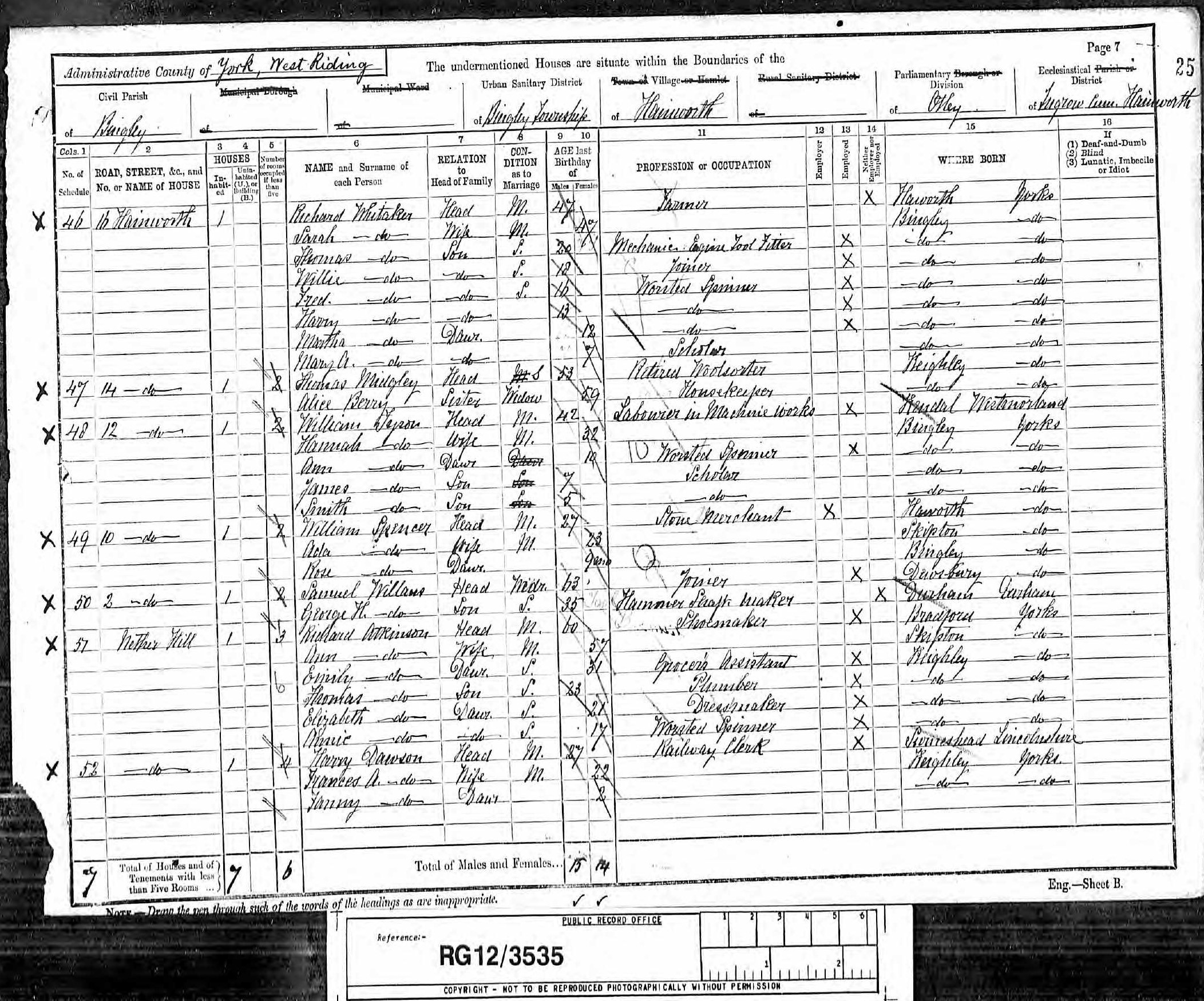 • Occupation: Hammer Shaft maker, 1901, Keighley, Yorkshire.