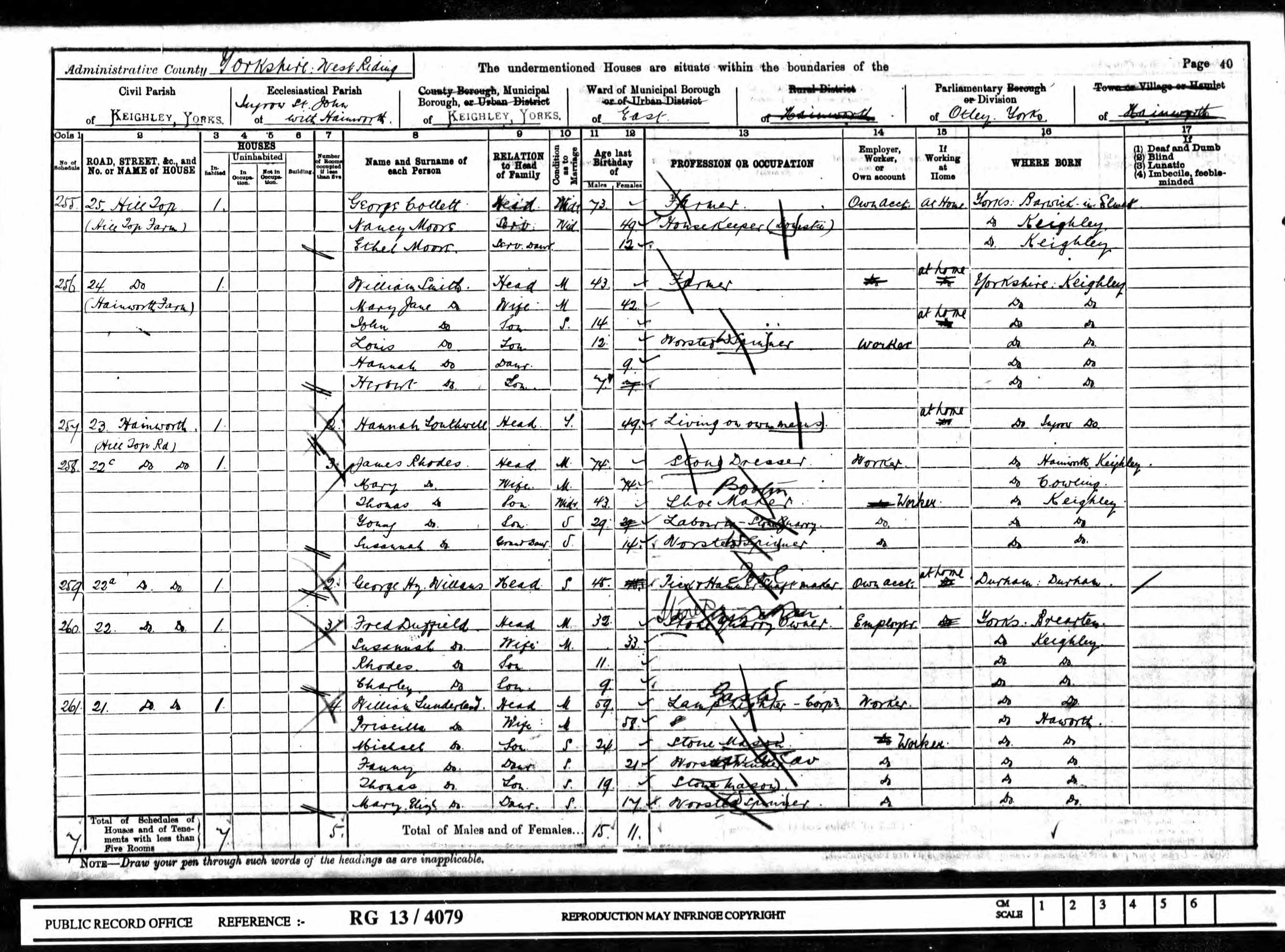 • Lived at: 2 Hainsworth, 1891, Bingley, Yorkshire.
