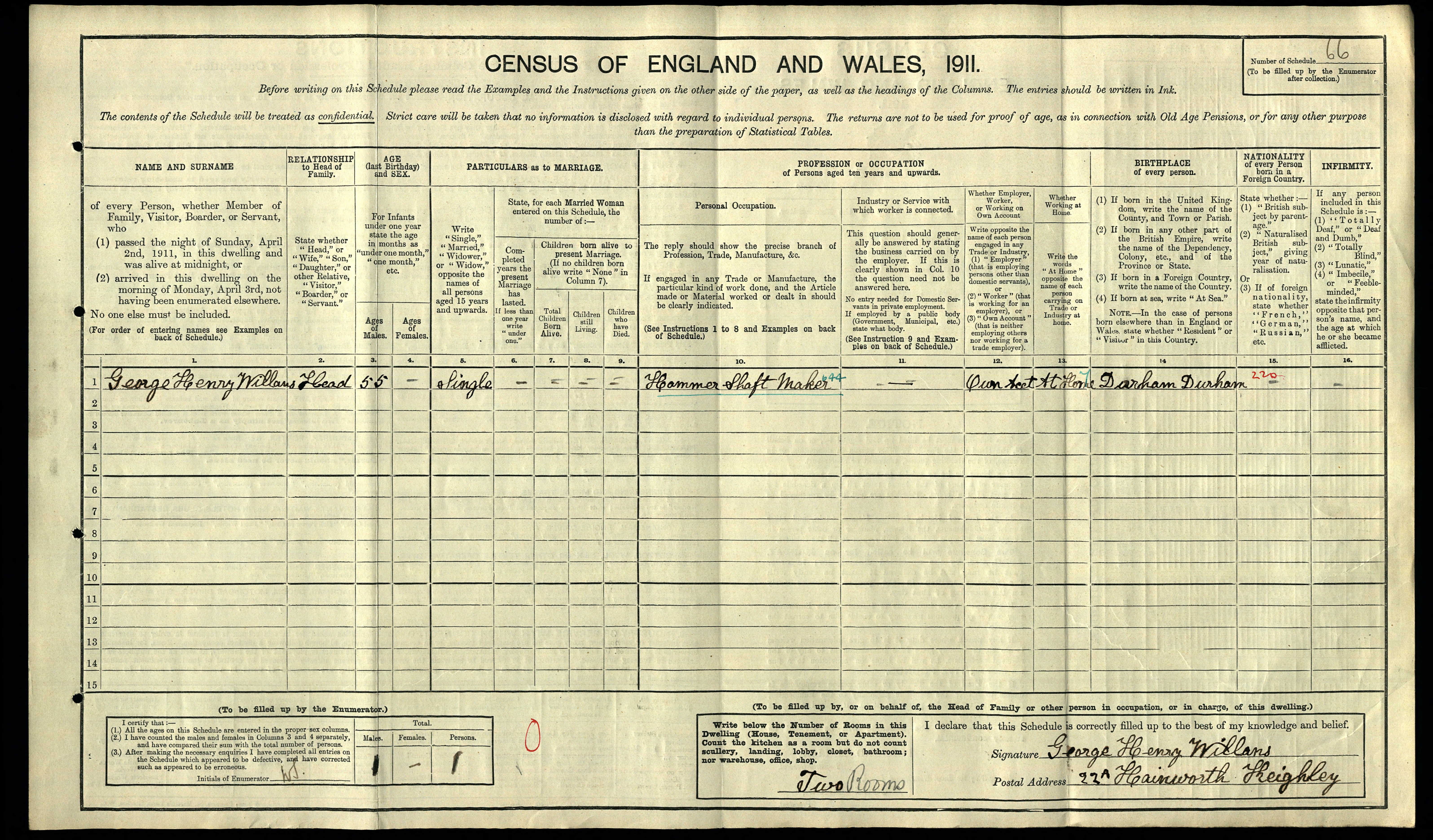 • Occupation: Hammer Shaft Maker, 1911, Keighley, Yorkshire.