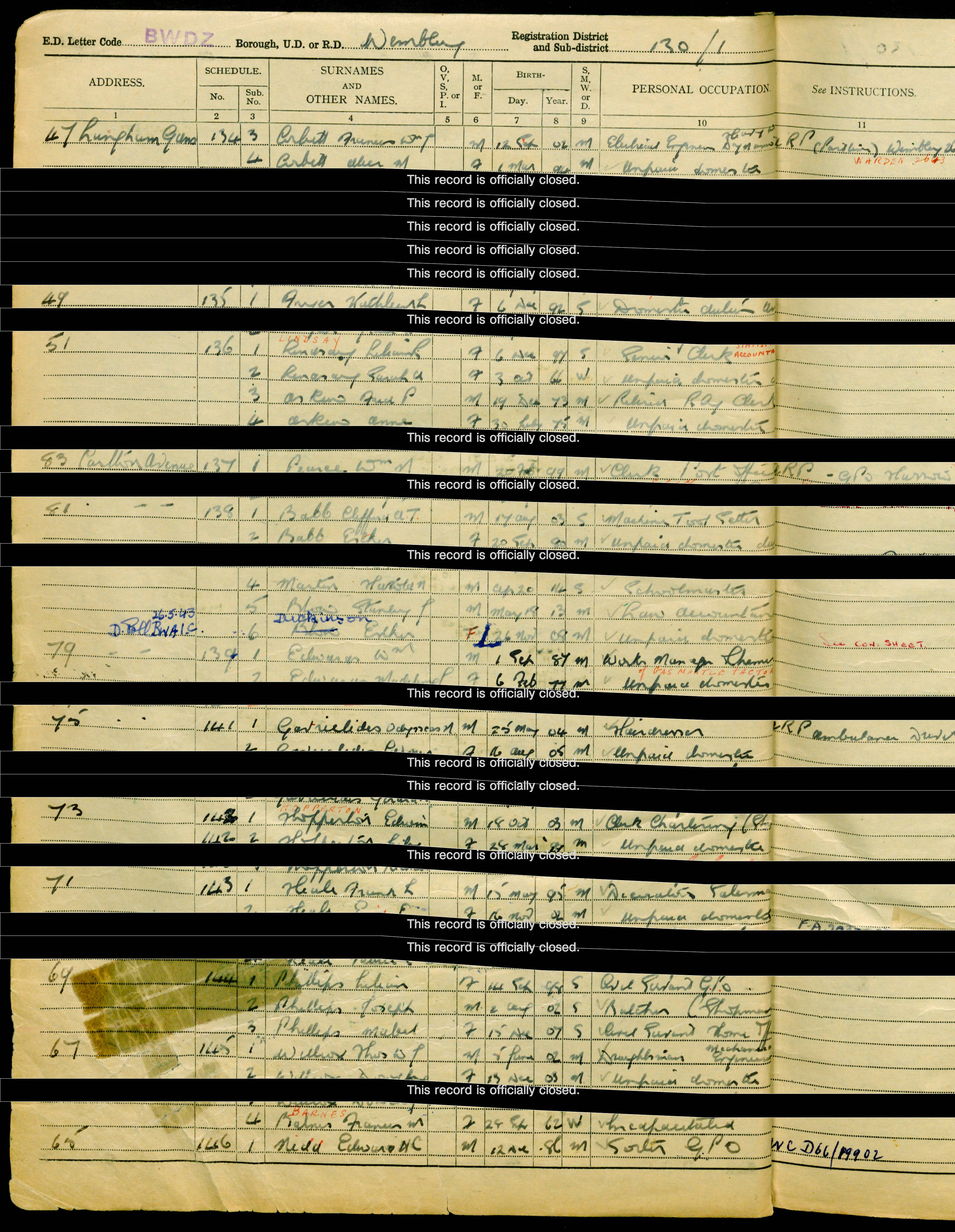 • Lived at: 62 Keslake Road, 1921, London NW6. • Occupation: Supervising Insurance Clerk, 1921, London. • Lived at: 65 Carlton Avenue West , Wembley M.B., Middlesex, England, 1939.