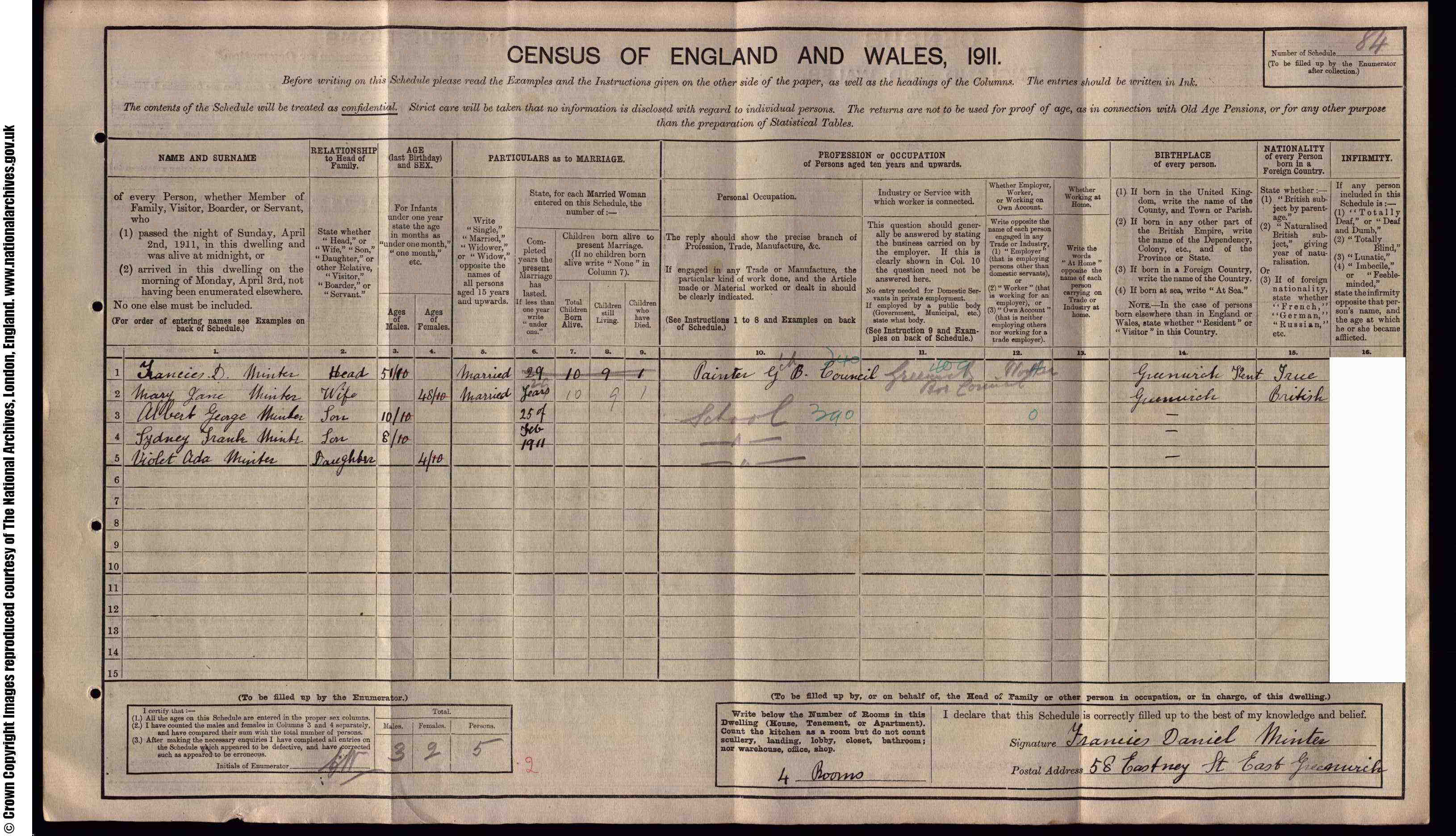 • Lived at: 58 Eastney Street, 1911, East Greenwich, London.