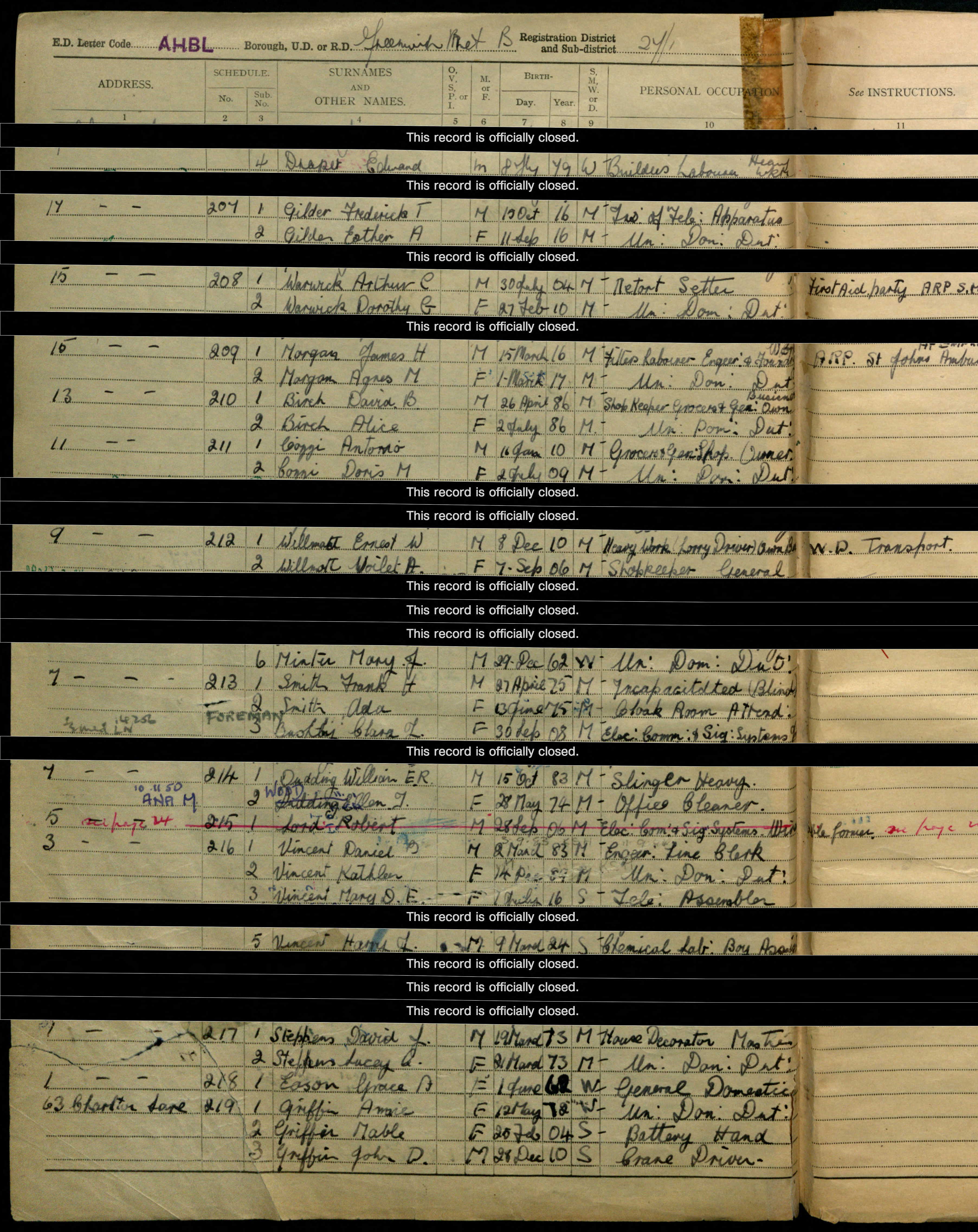 • Occupation: Shopkeeper, 1939, Greenwich, Kent, England.