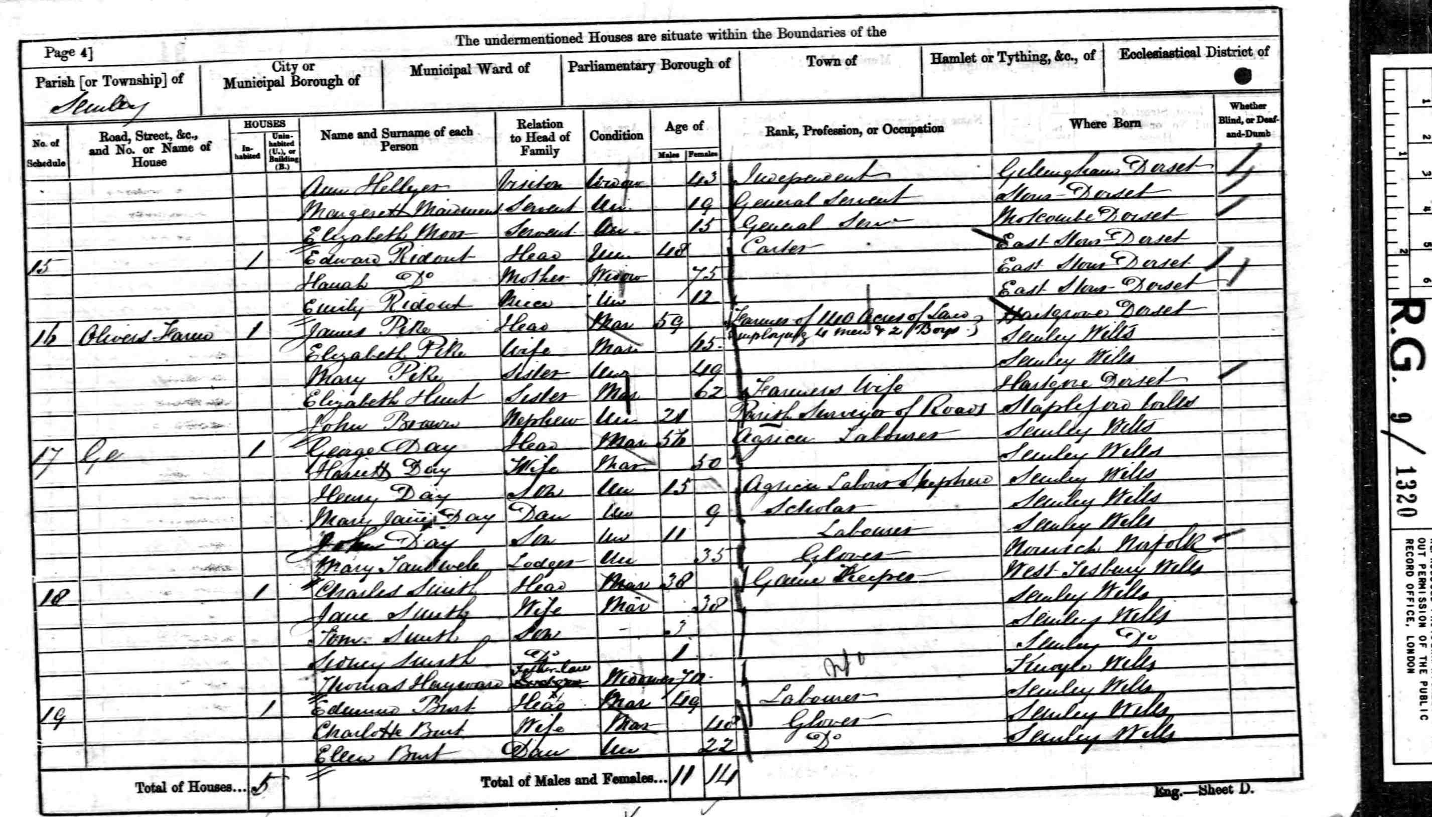 • Lived at: Oliver's Farm, 1861, Semley, Wiltshire, England. 3 • Occupation: Agricultural Labourer, 1861, Semley, Wiltshire, England. 3