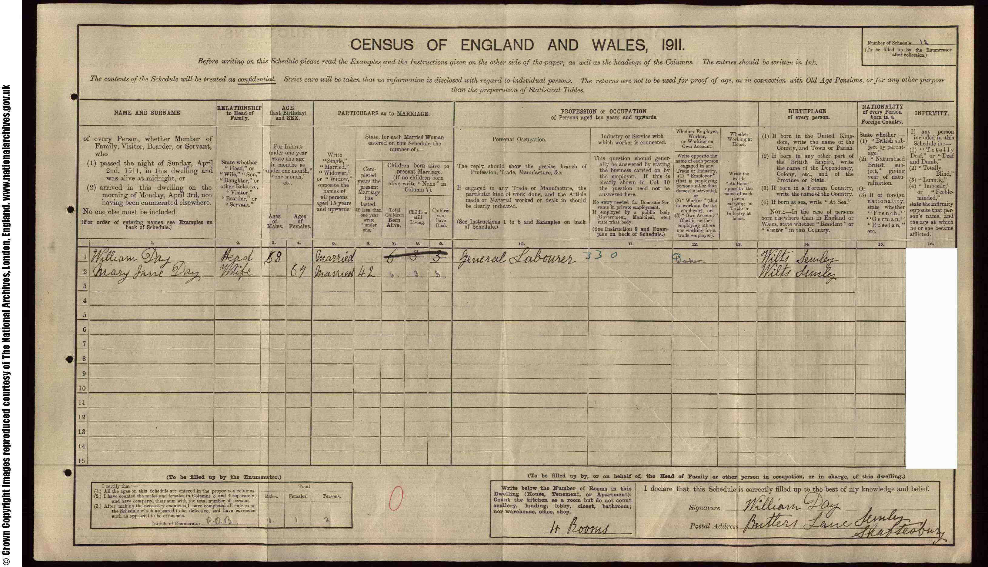 • Lived at: Butters Lane, 1911, Semley, Wiltshire, England. • Occupation: General Labourer, 1911, Semley, Wiltshire, England.
